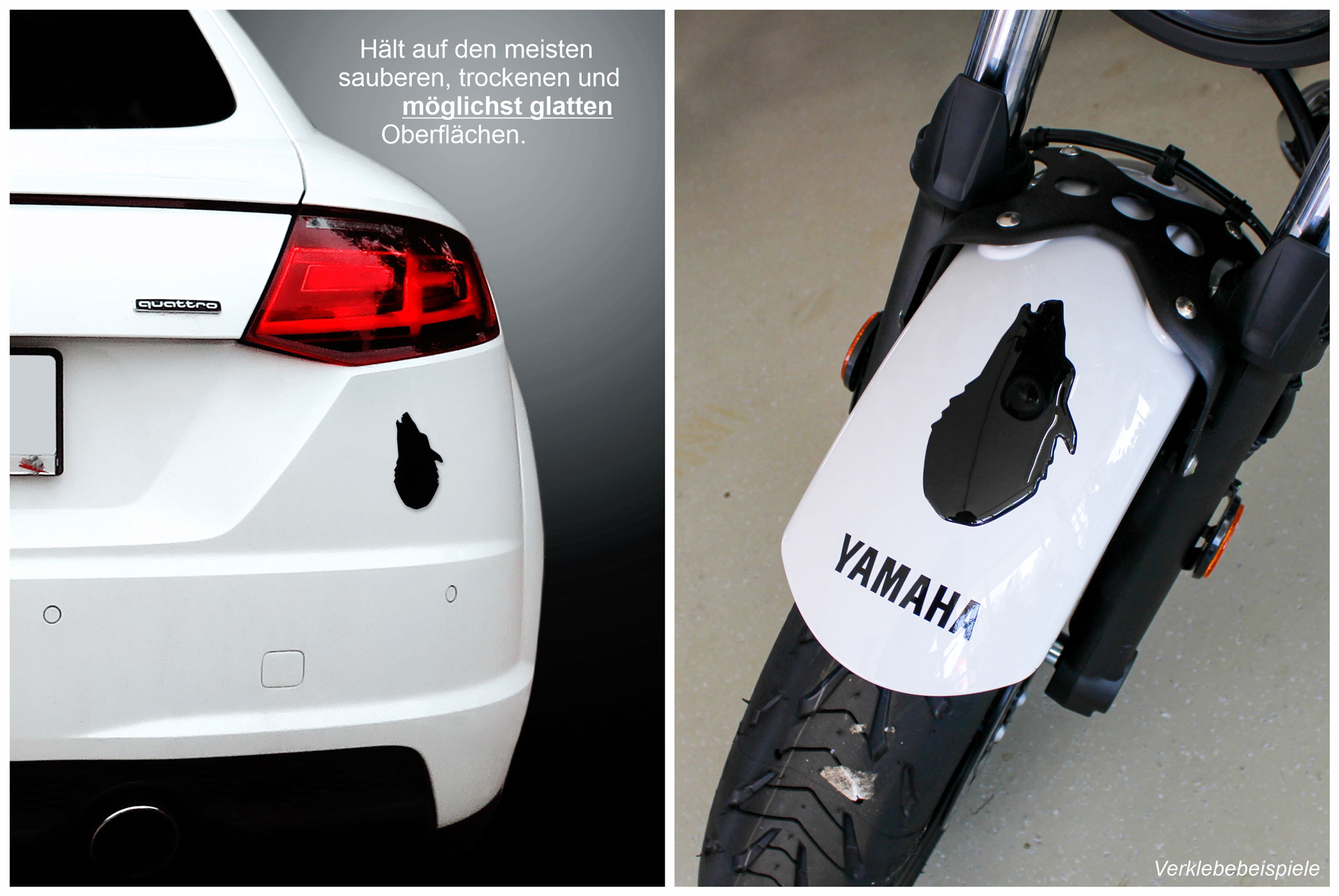 Eigenschaften "3D-Aufkleber schwarz Tankpad Wolfskopf Auto Kratzschutz Silhouette Heckscheibe"