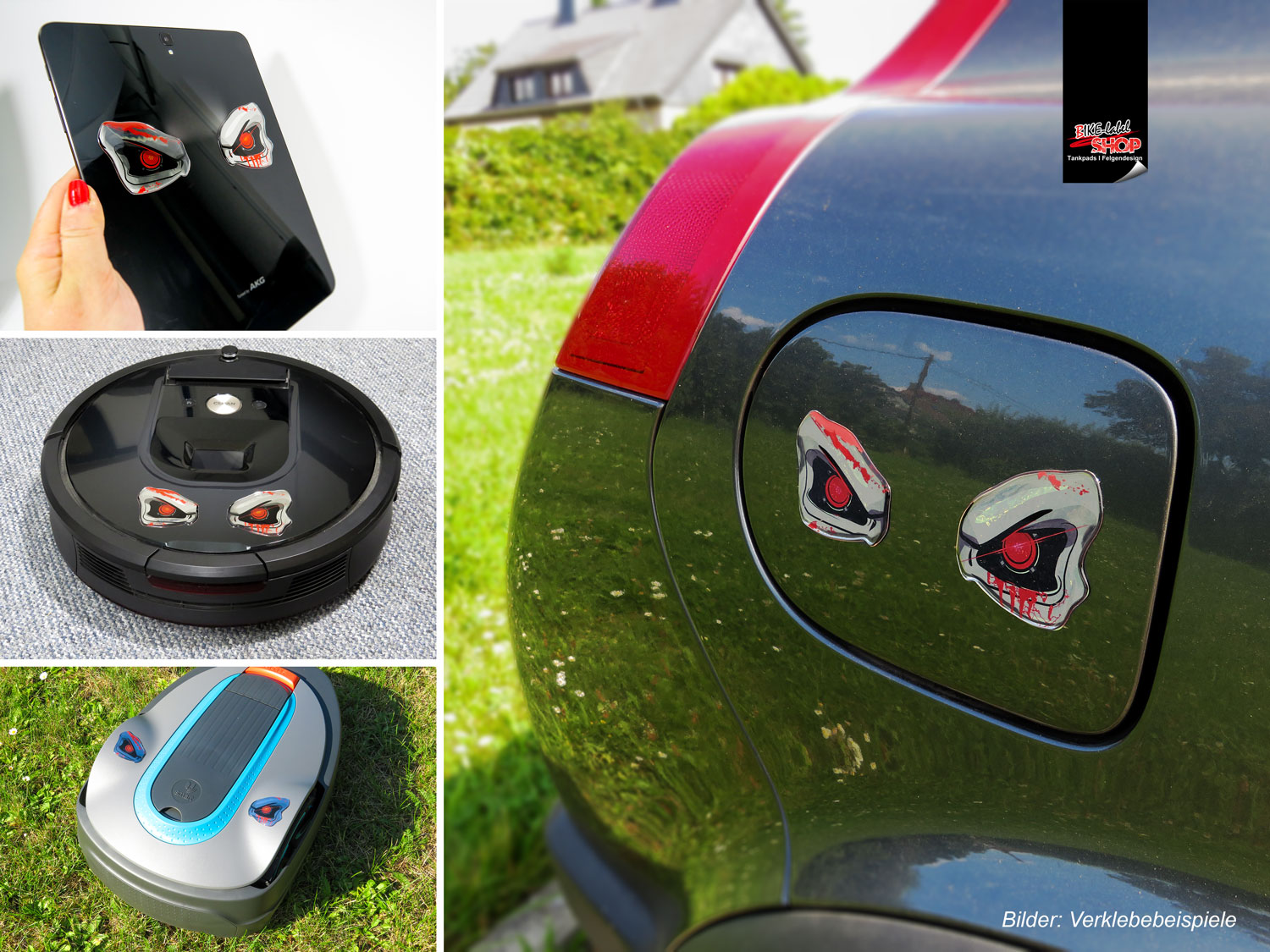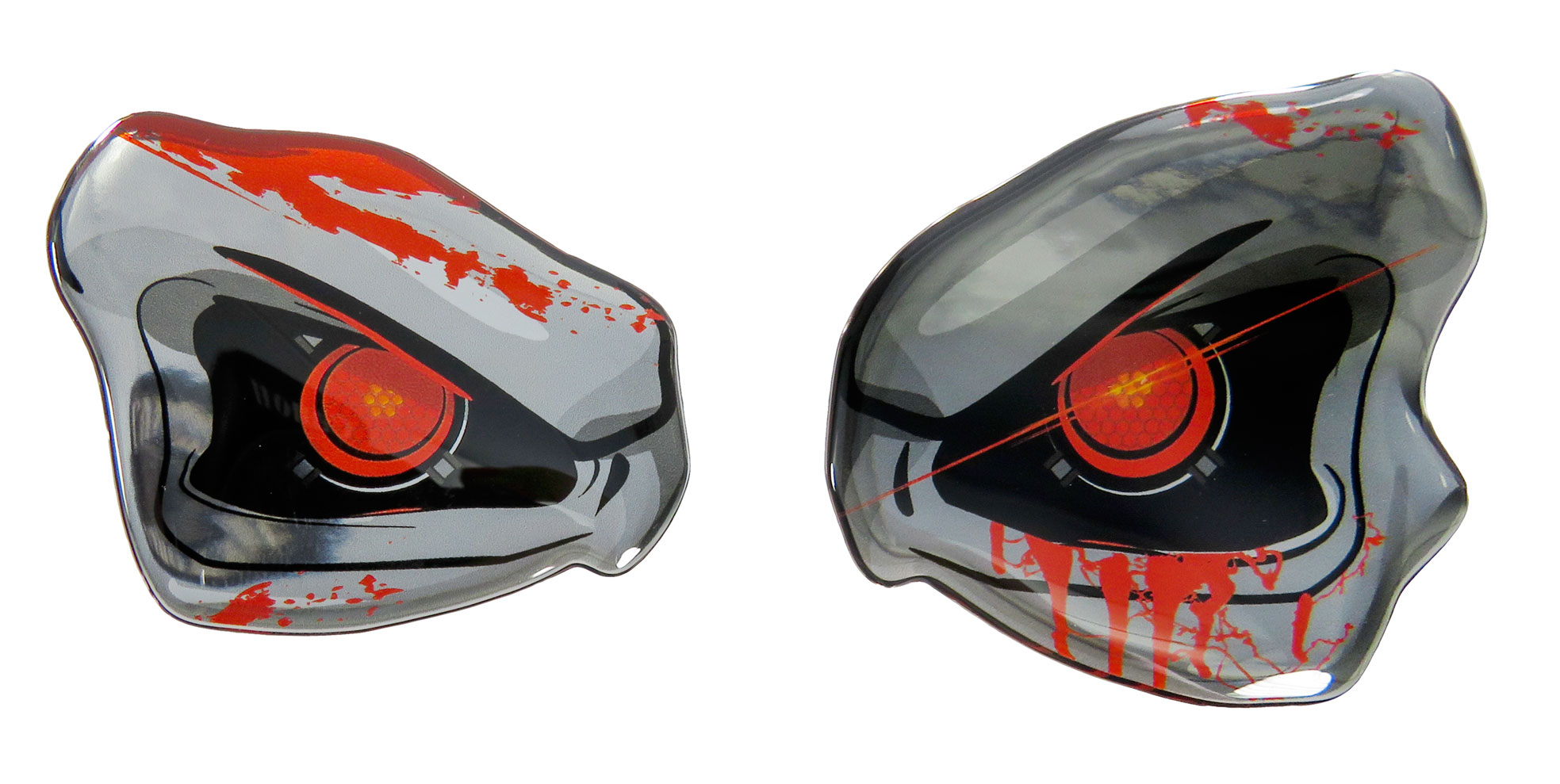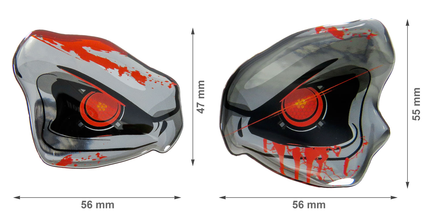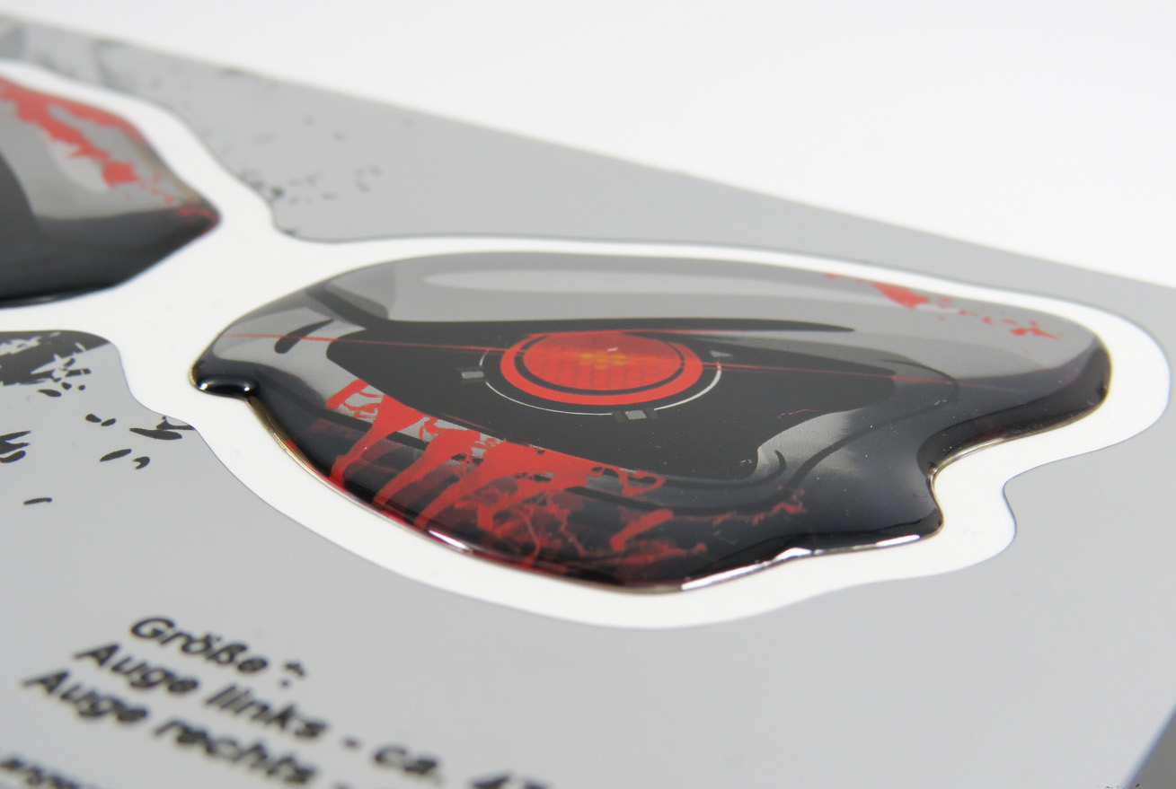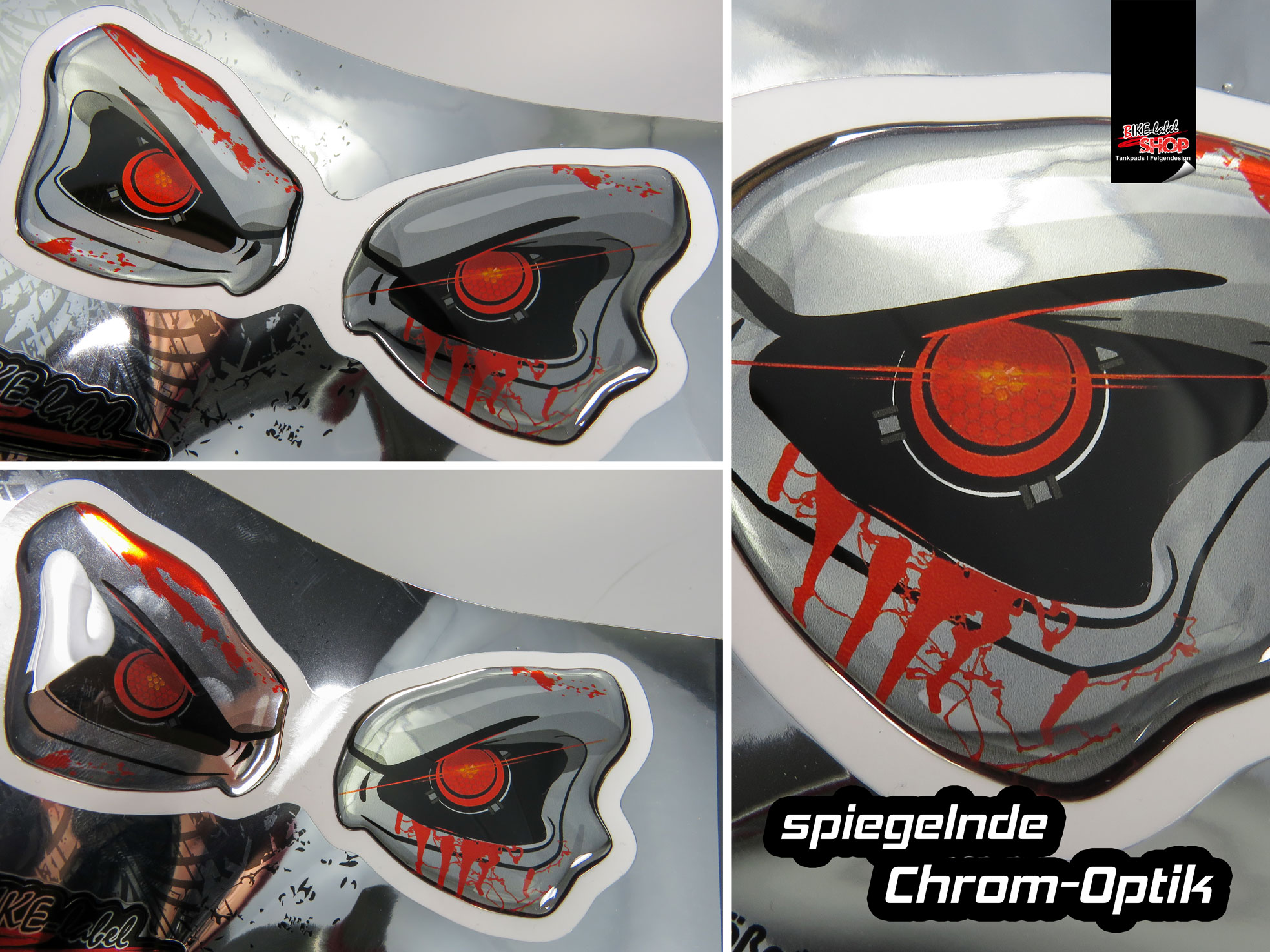 Eigenschaften "3D Roboter Chrom Augen Aufkleber Sticker für Motorrad Dekore Helm Kratzschutz"