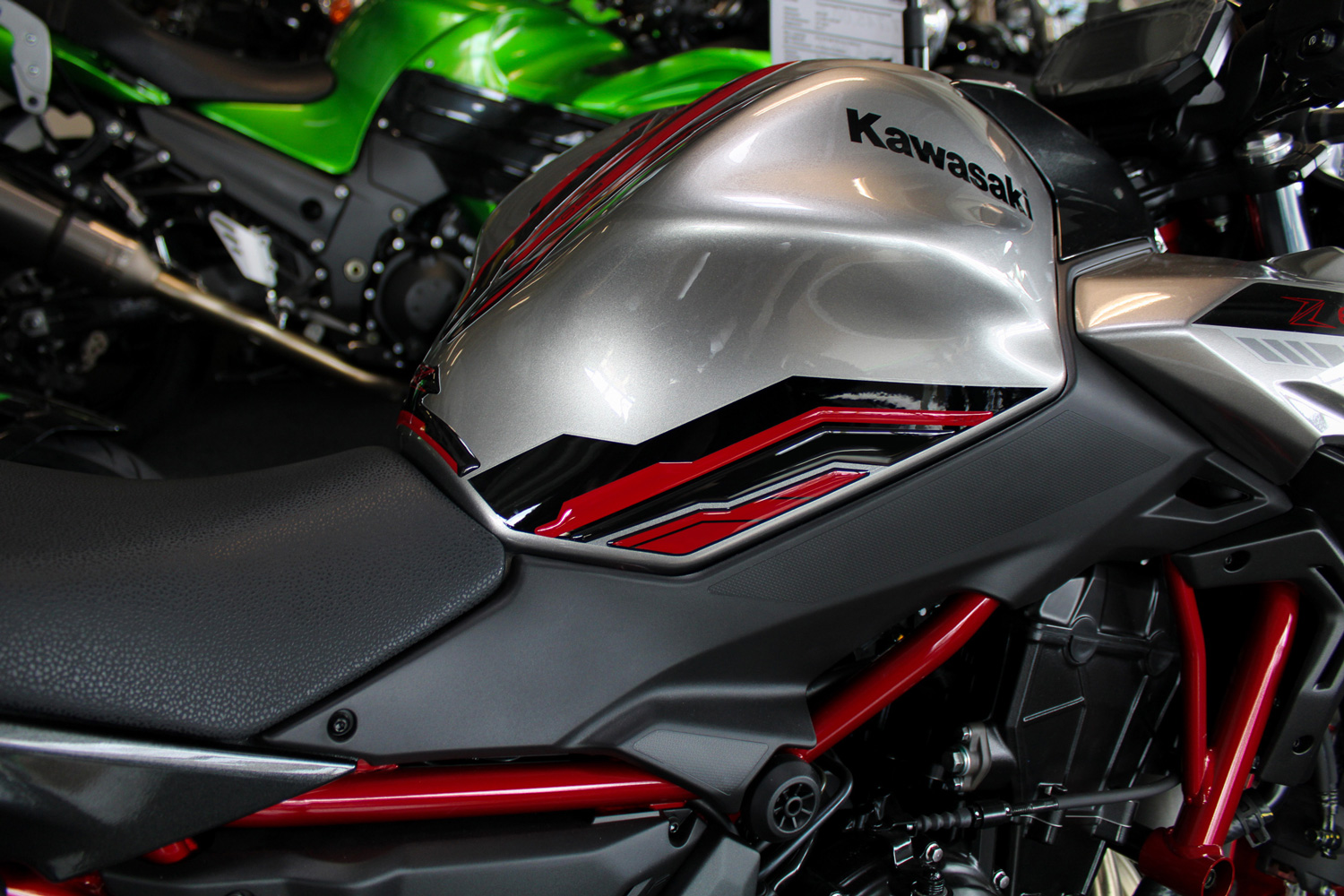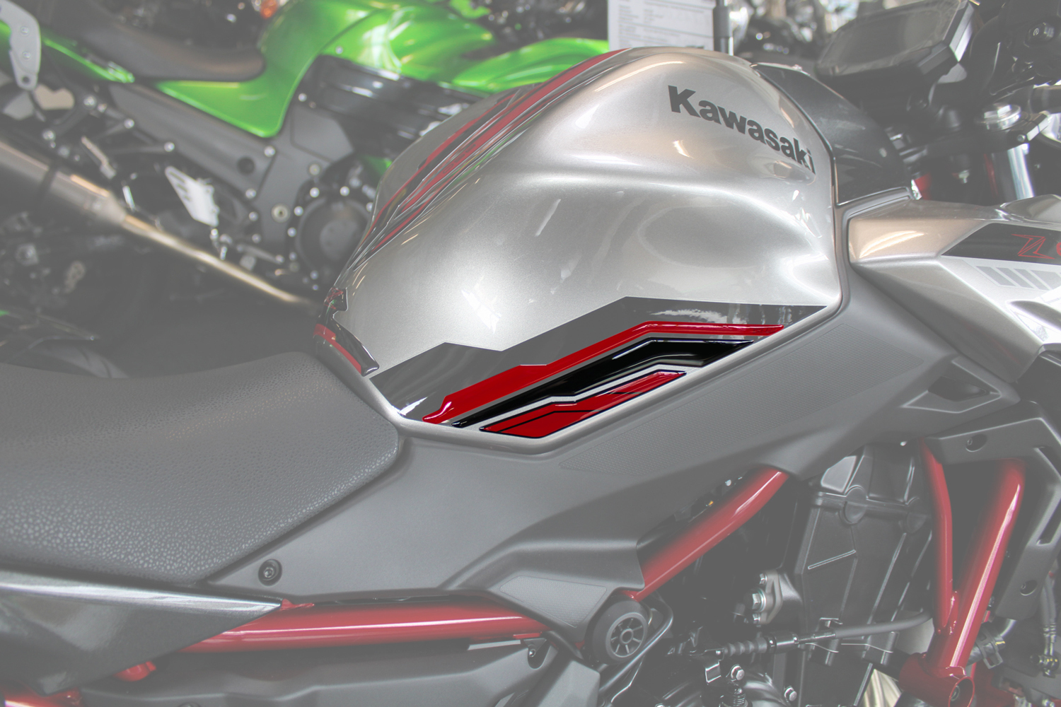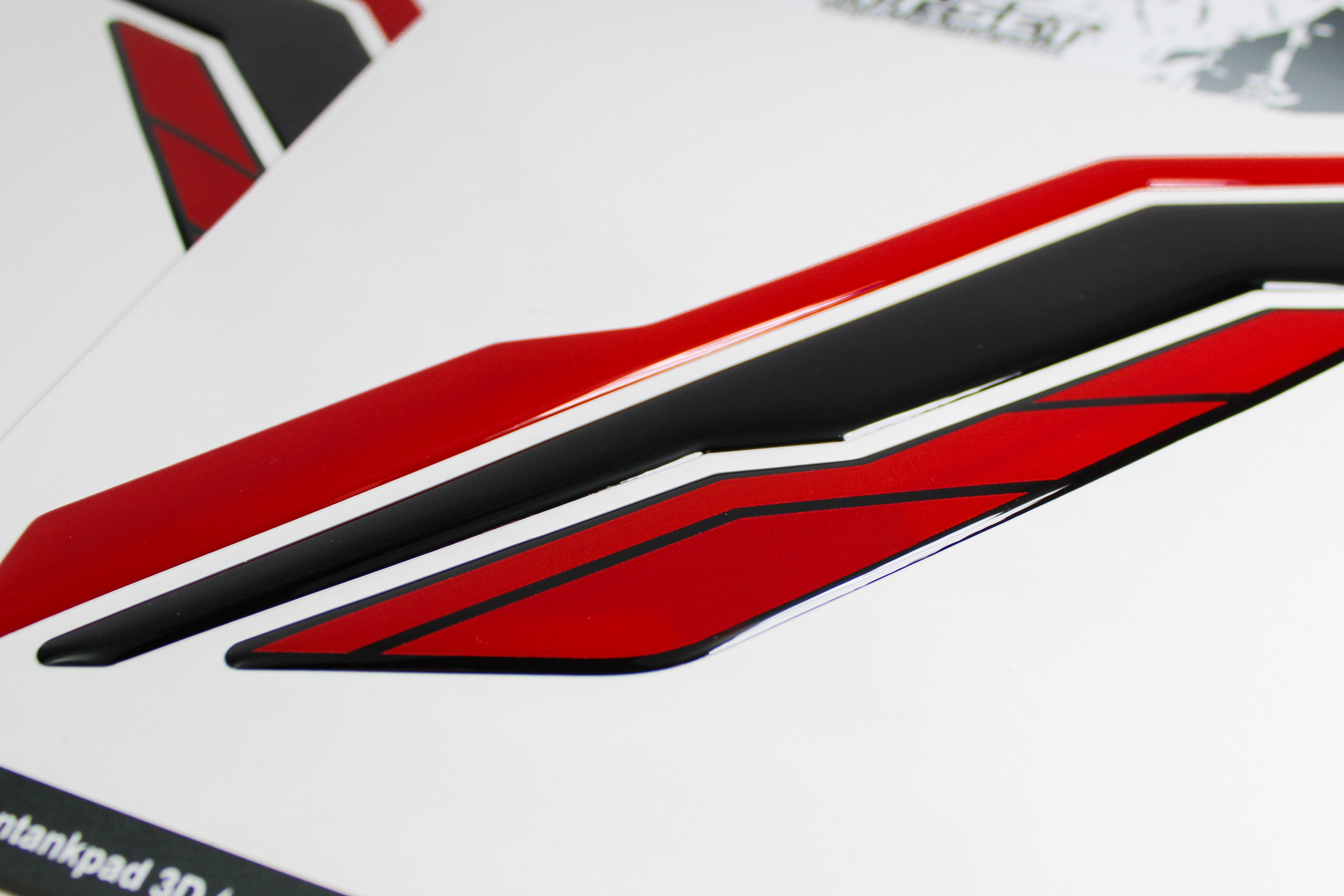 Aufkleber 3D Kniepad Lackschutz Motorrad kompatibel für Kawasaki Z650 rot silber