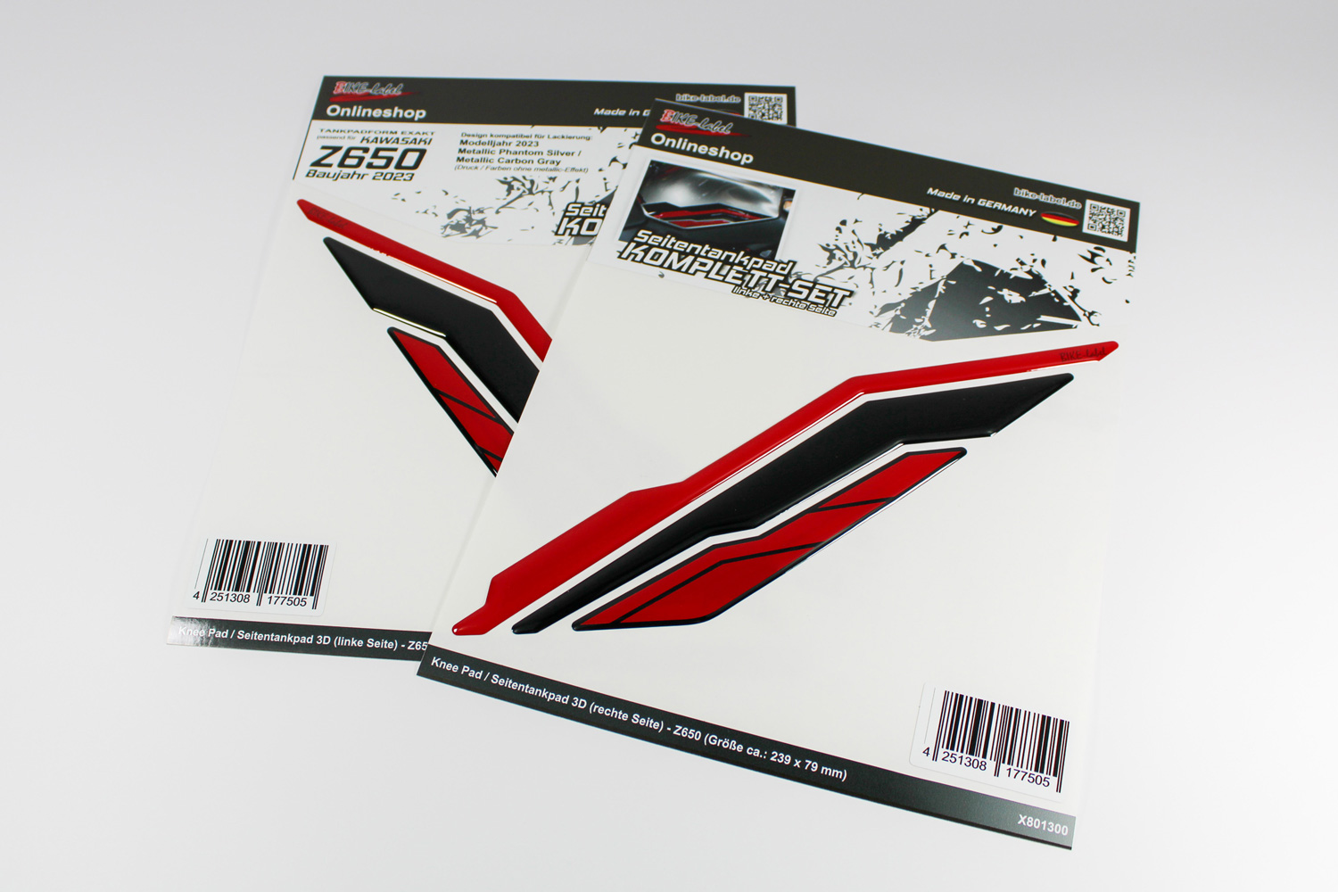 Eigenschaften "Aufkleber 3D Kniepad Lackschutz Motorrad kompatibel für Kawasaki Z650 rot silber"