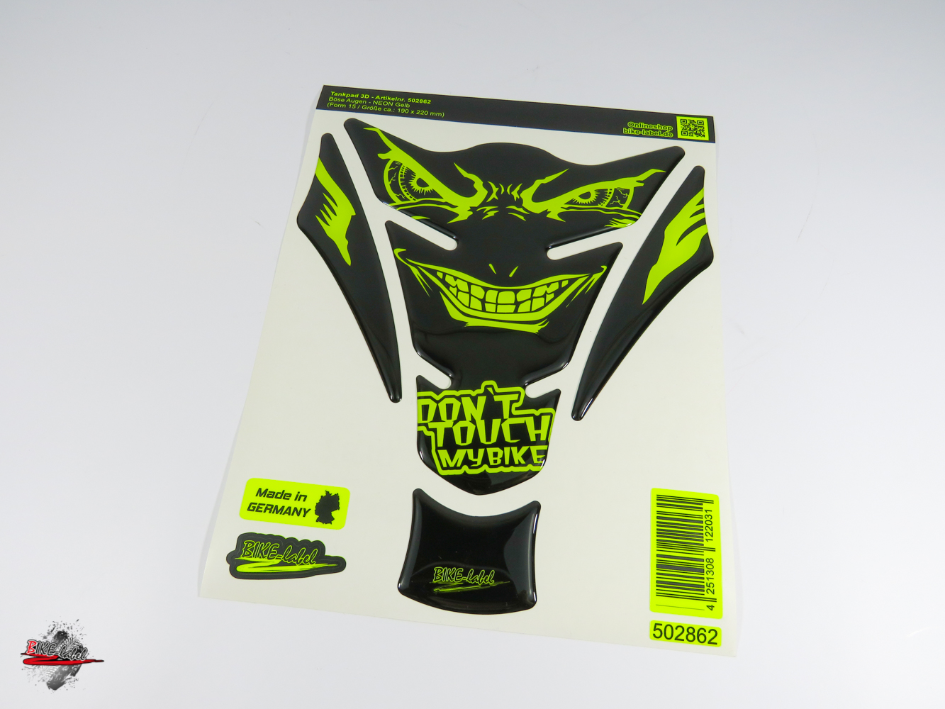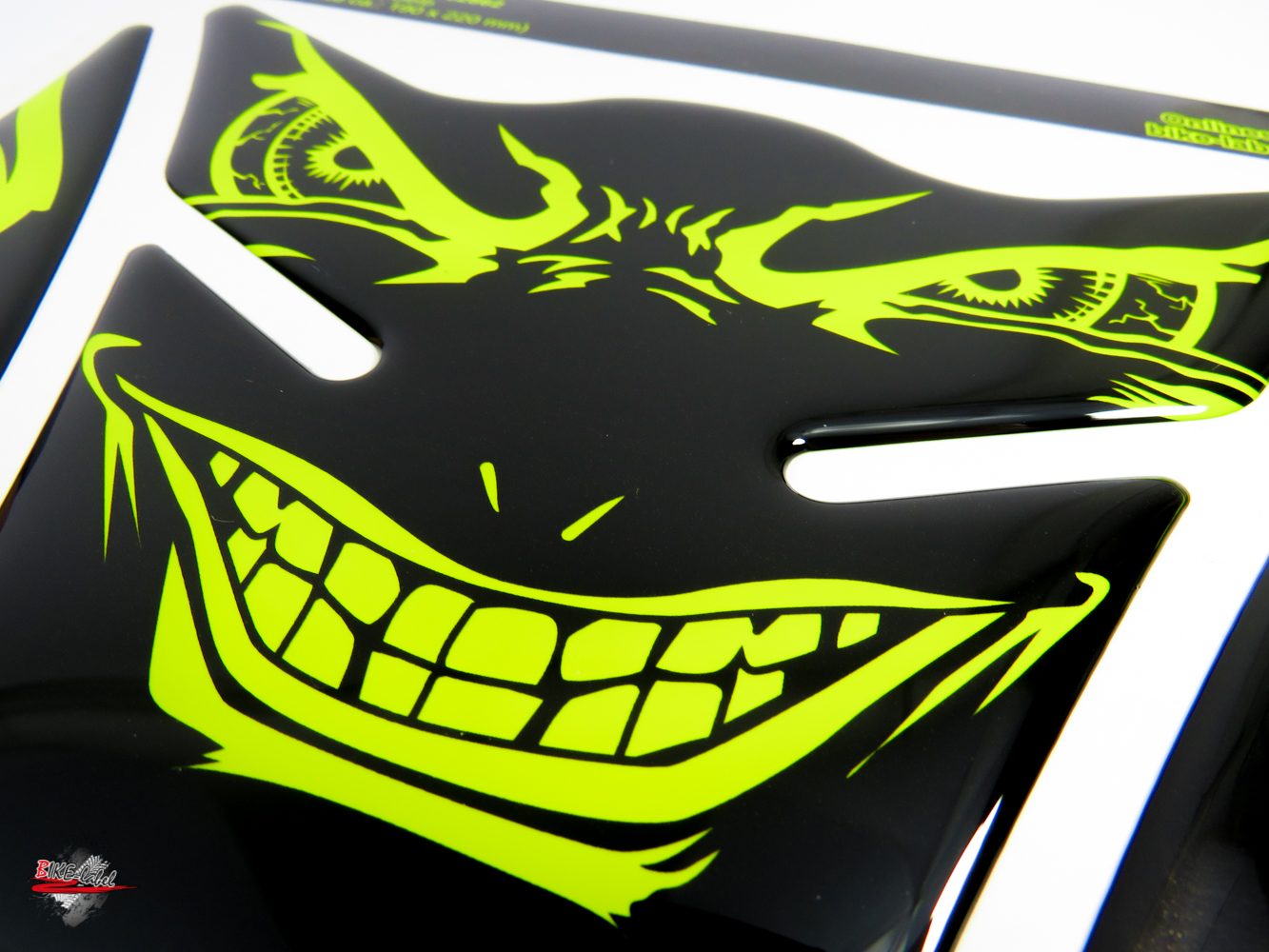 Eigenschaften "B-Ware Motorrad Tankpad Neon Gelb – 3D Aufkleber Böse Augen Tankschutz"