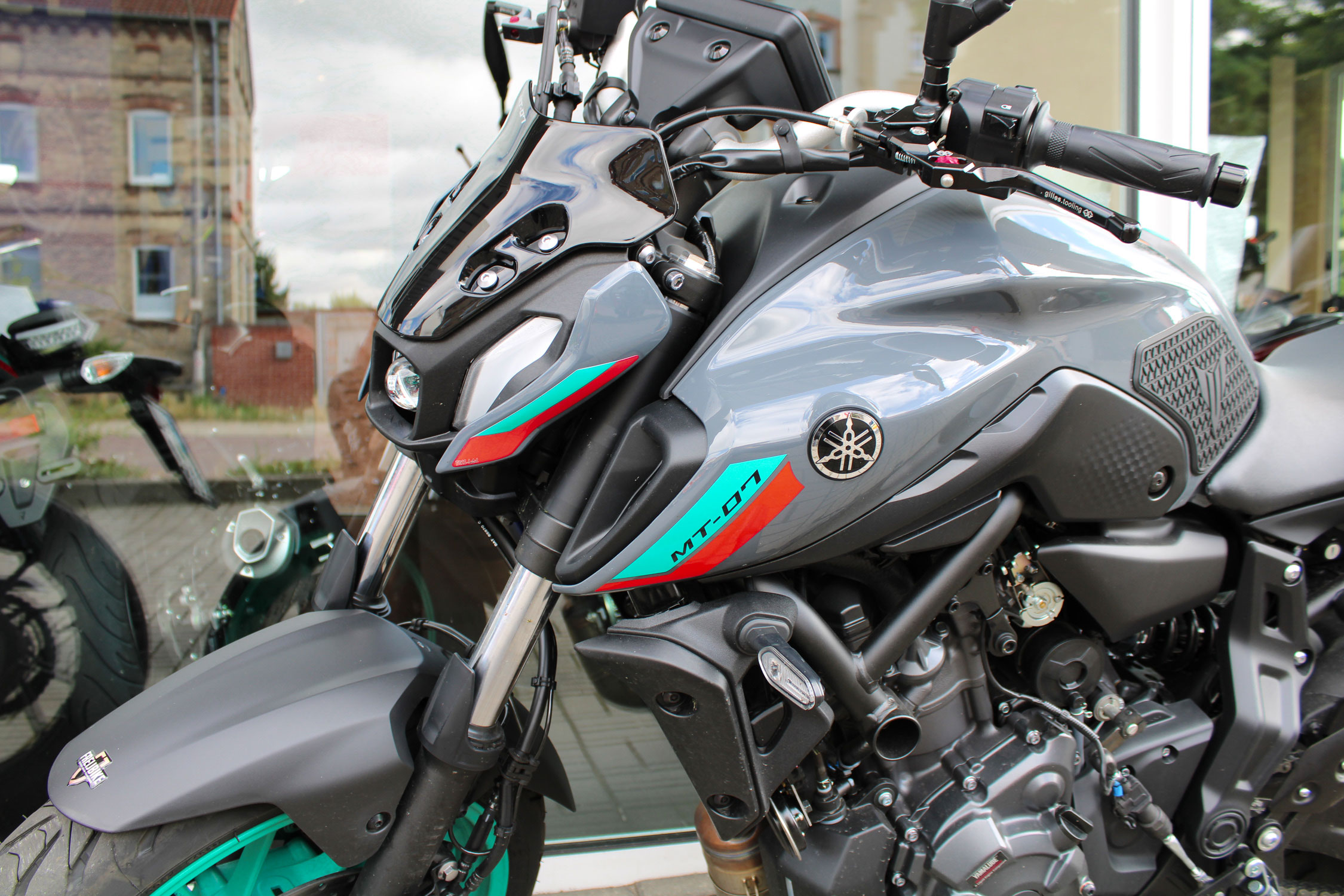 Dekor Aufkleber Front Maske kompatibel mit Yamaha MT-07 Cyan Storm ab BJ 2022