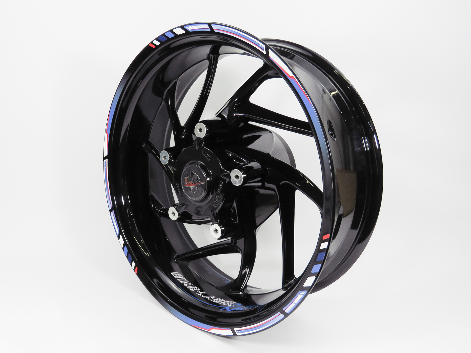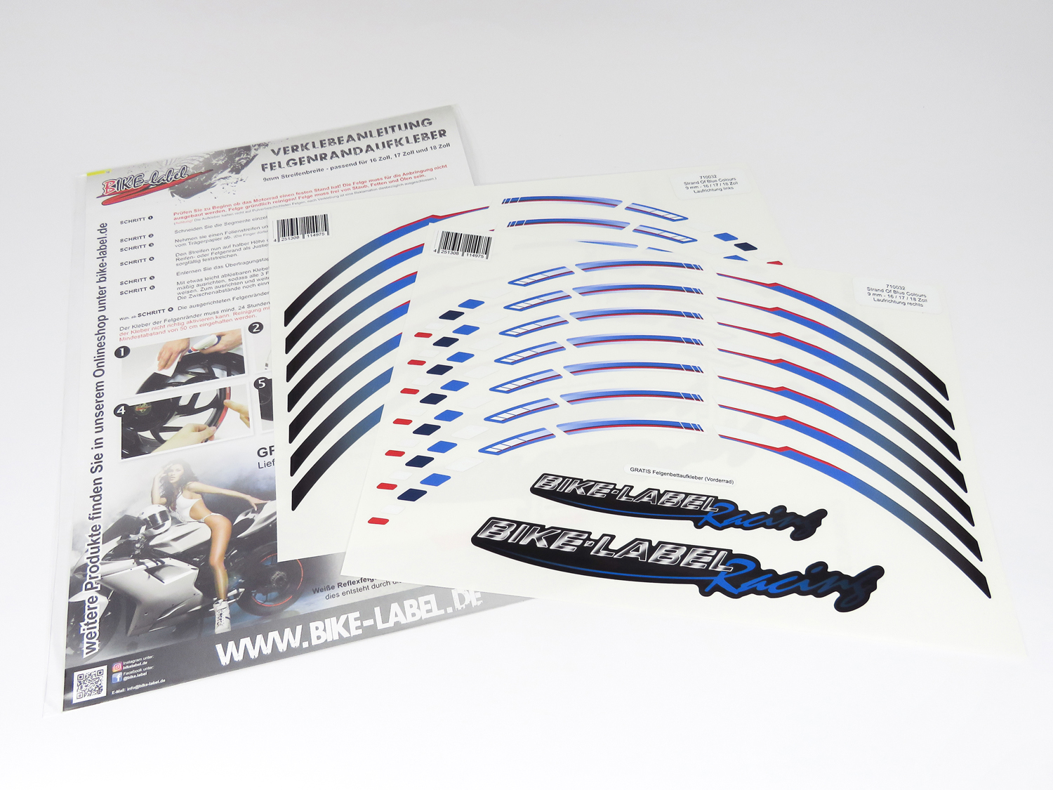 Dekor Felgenrand Aufkleber für Auto und Motorrad blau weiß rot