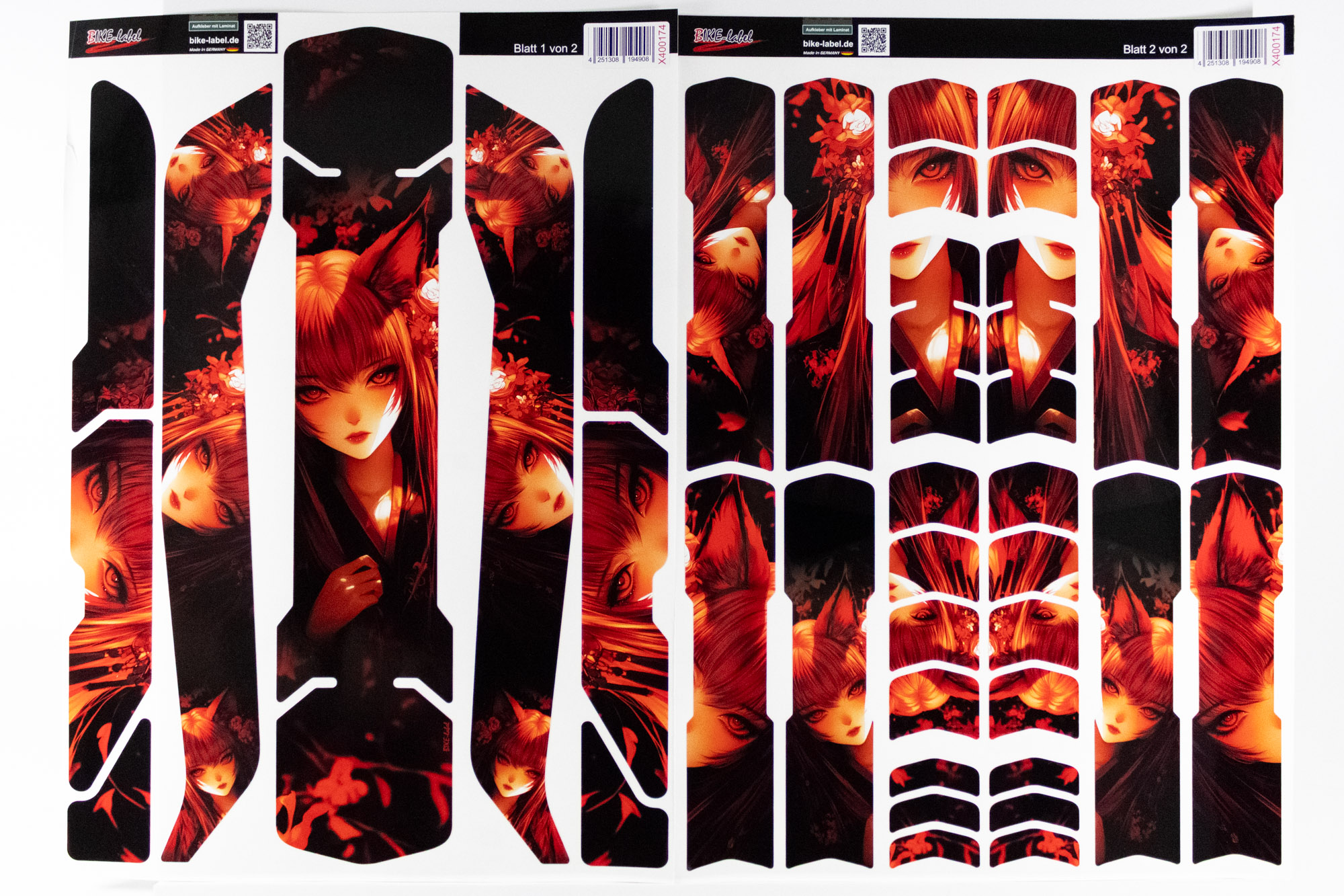 Fahrrad Anime Aufkleber Set Kitsune Foxy Fuchsmädchen Design für Bike Rahmen
