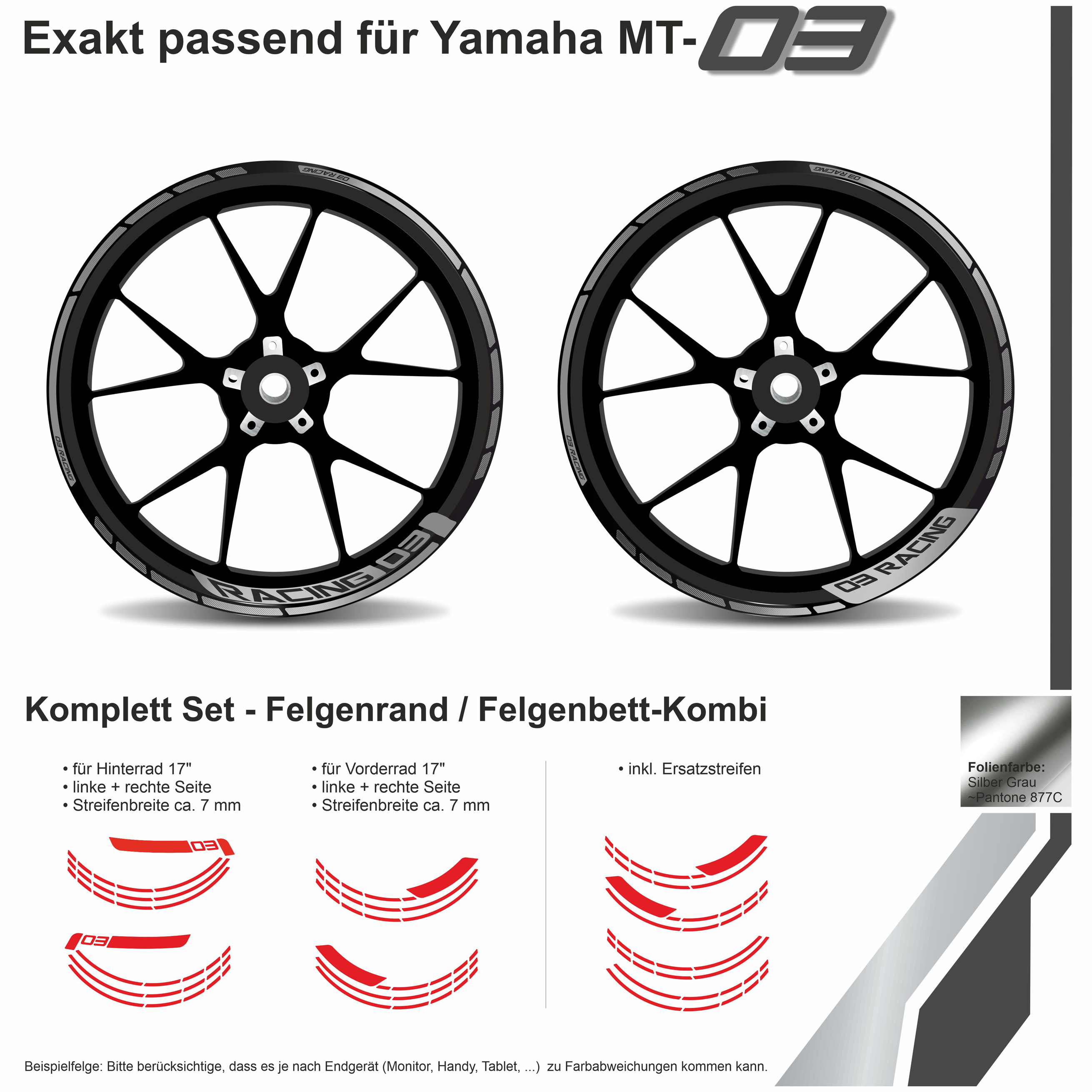 Felgenränder Set Silber Aufkleber für Motorradfelge kompatibel für Yamaha MT-03