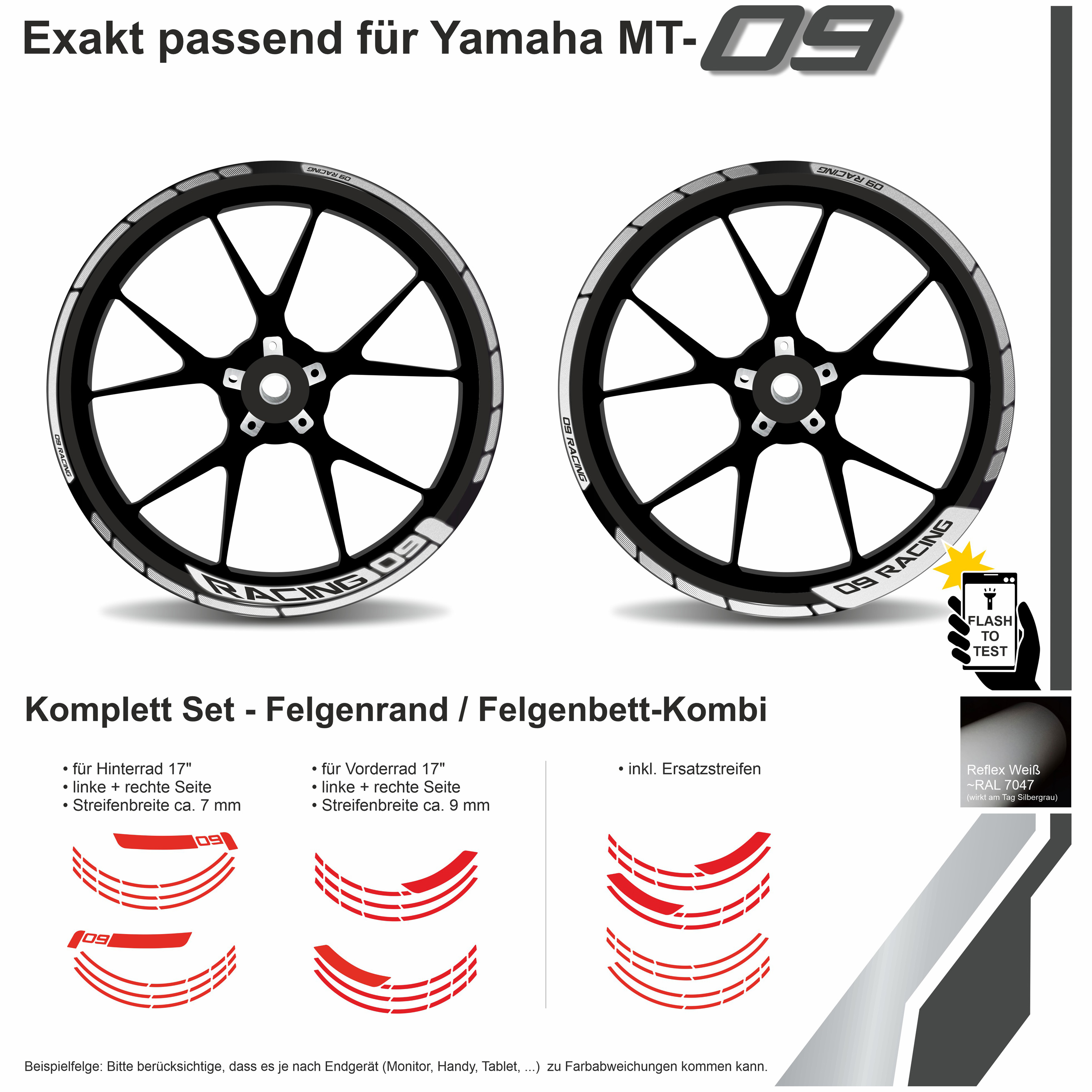 Felgenrand Aufkleber Set Reflex weiß Dots Motorrad kompatibel für Yamaha MT-09