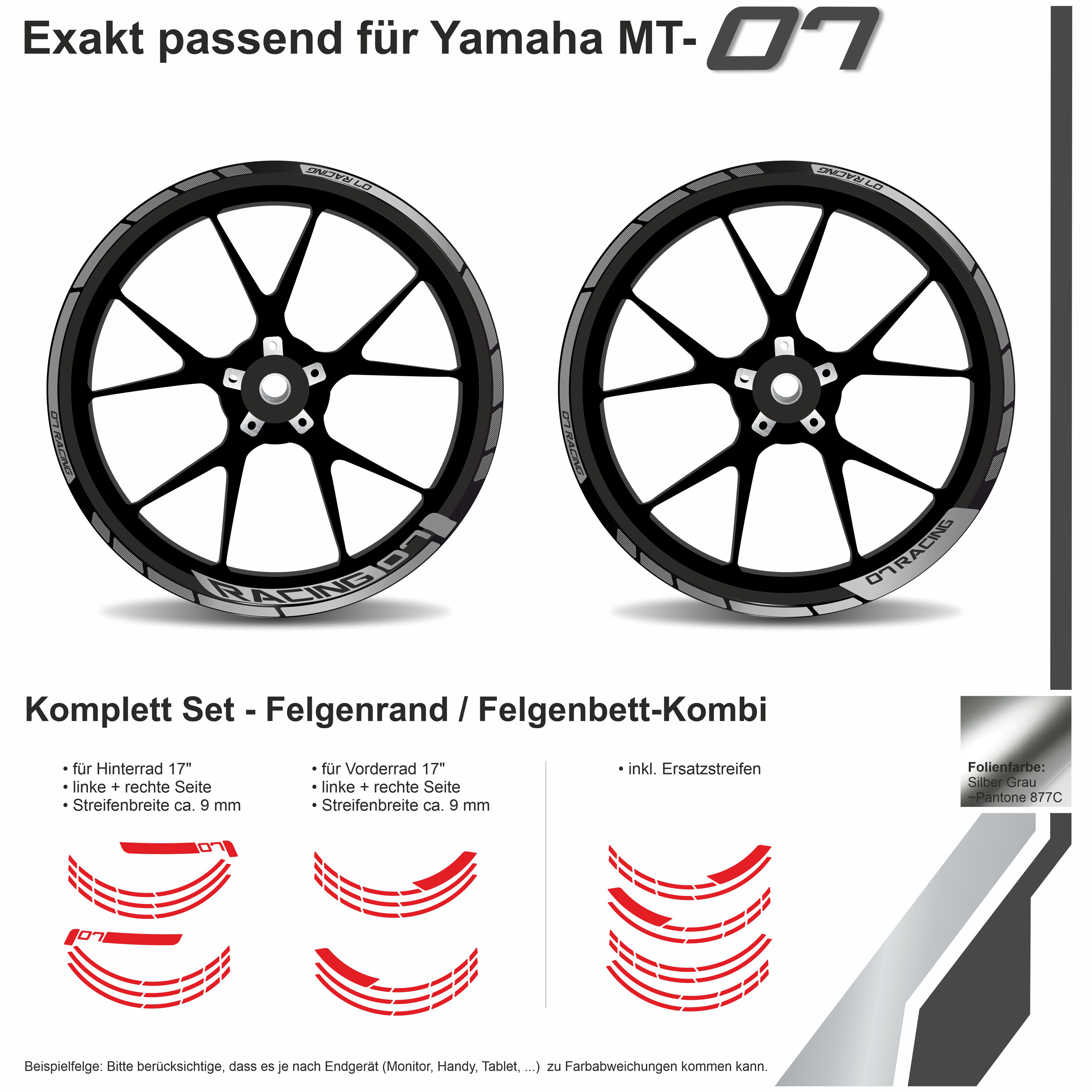 Eigenschaften "Felgenrand Black Dots Silber Aufkleber für Motorrad kompatibel für Yamaha MT-07"