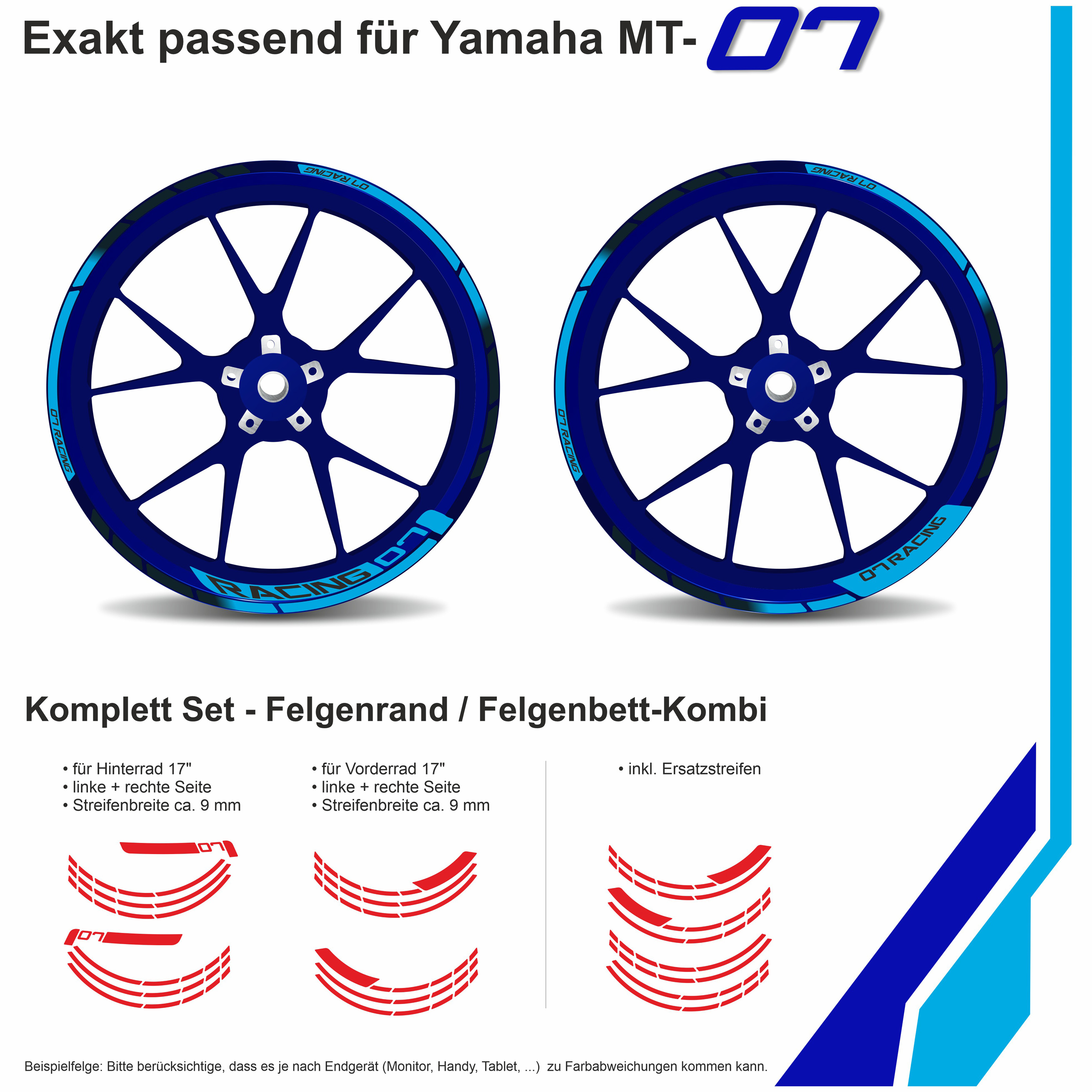 Felgenrand Sticker Klebeset Motorradfelge kompatibel für Yamaha Icon Blue MT-07