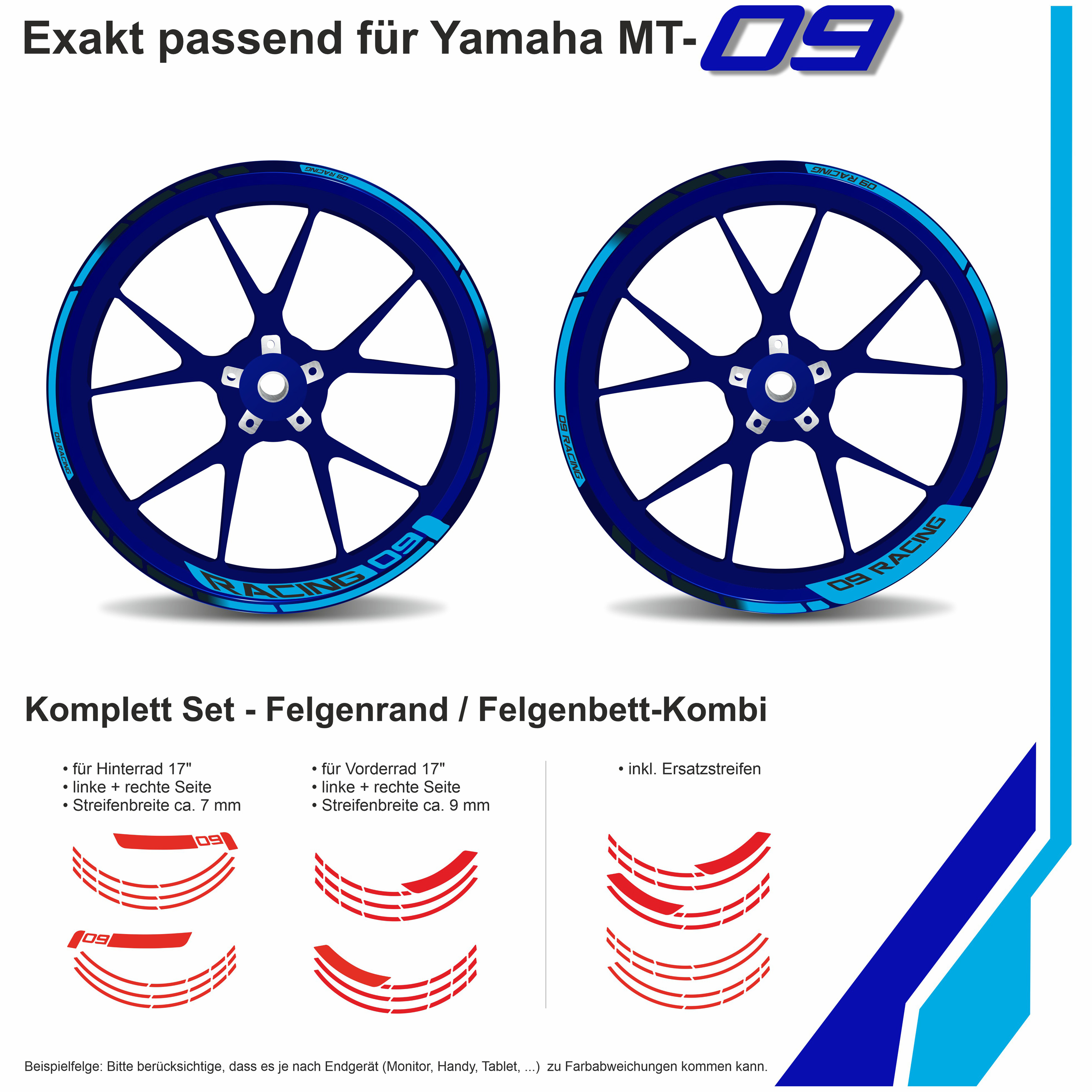 Felgenrand Sticker Klebeset Motorradfelge kompatibel für Yamaha Icon Blue MT-09