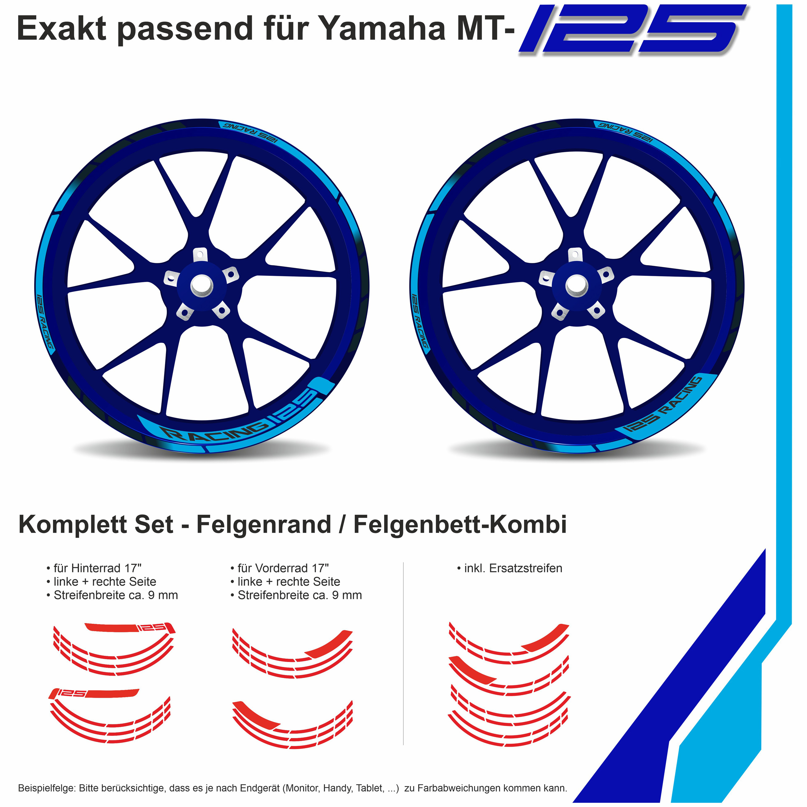 Felgenrand Sticker Klebeset Motorradfelge kompatibel für Yamaha Icon Blue MT-125