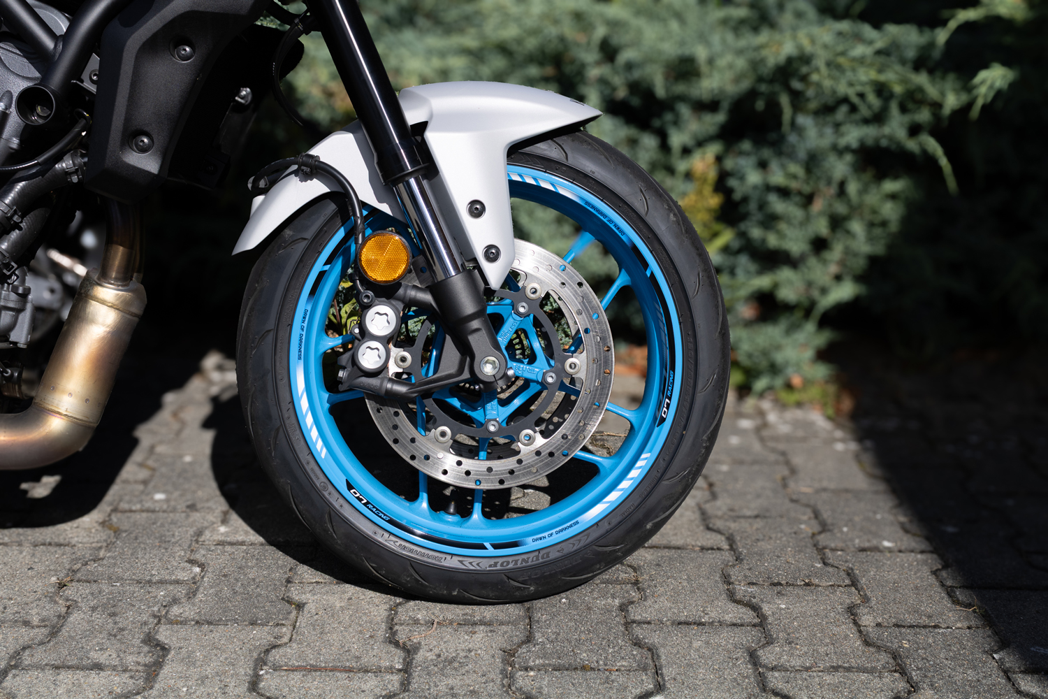 Felgenrandaufkleber Felgenbett blau weiß kompatibel mit Yamaha MT-07 Ice Storm