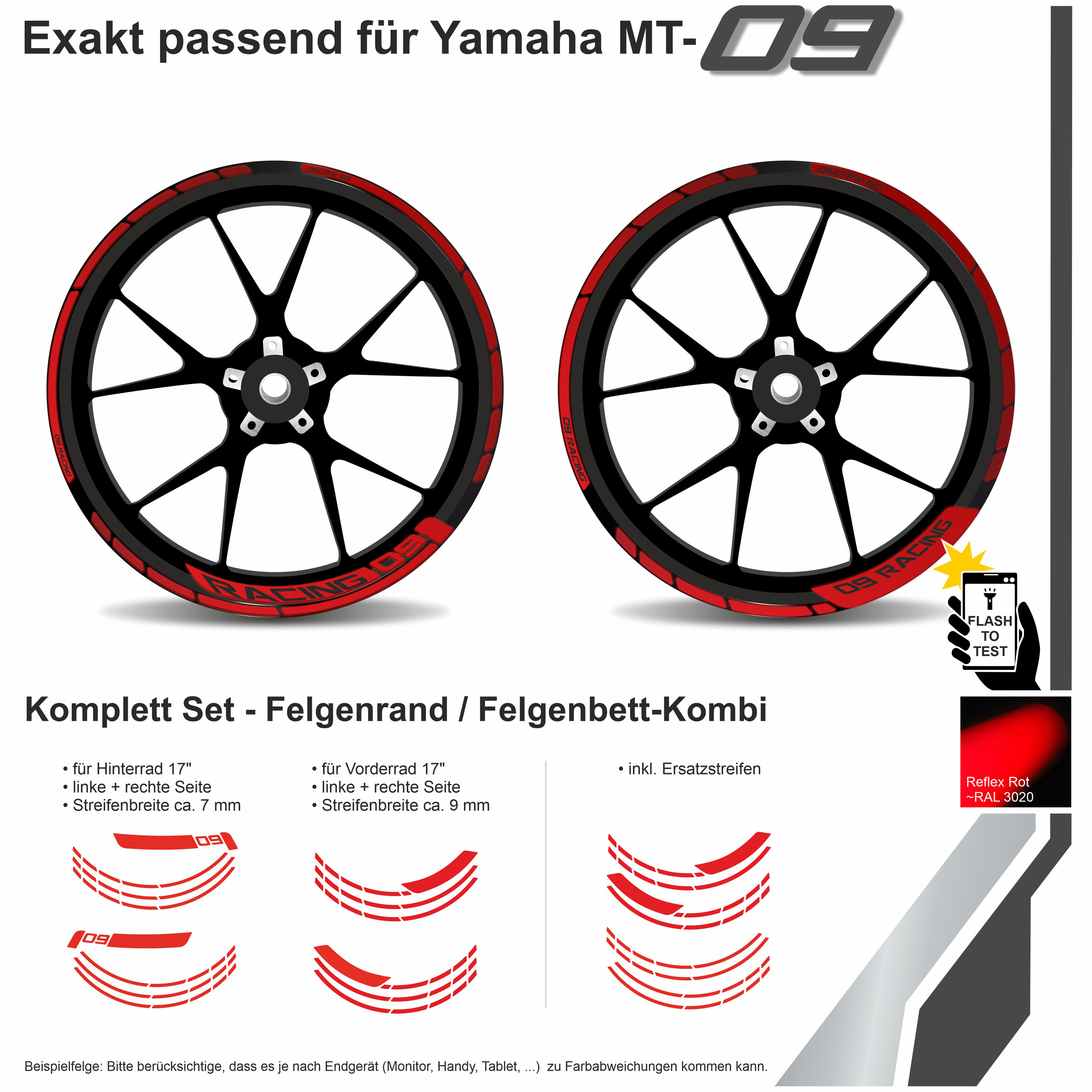 Felgenrandaufkleber Komplettset Reflex rot Dot Bike kompatibel für Yamaha MT-09