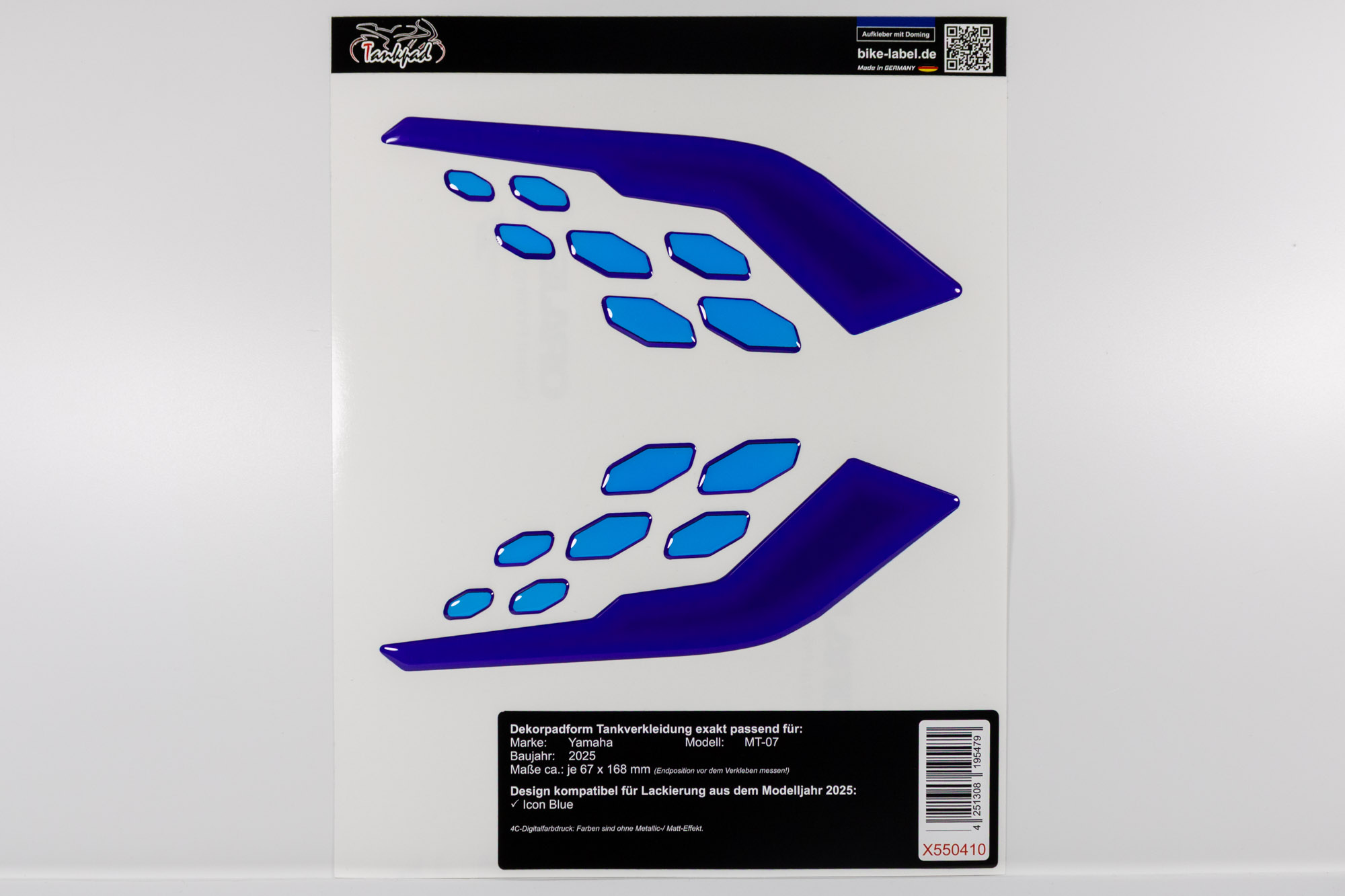 Eigenschaften "Grafik-Kit Tank Dekor Aufkleber kompatibel mit Yamaha MT07 Icon Blue (MY 2025)"