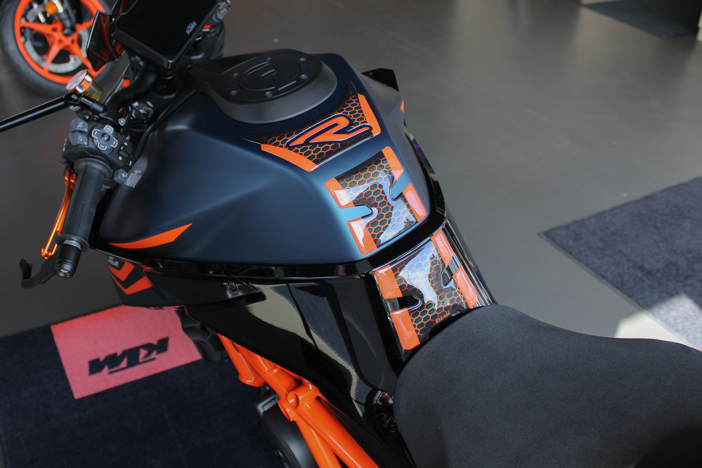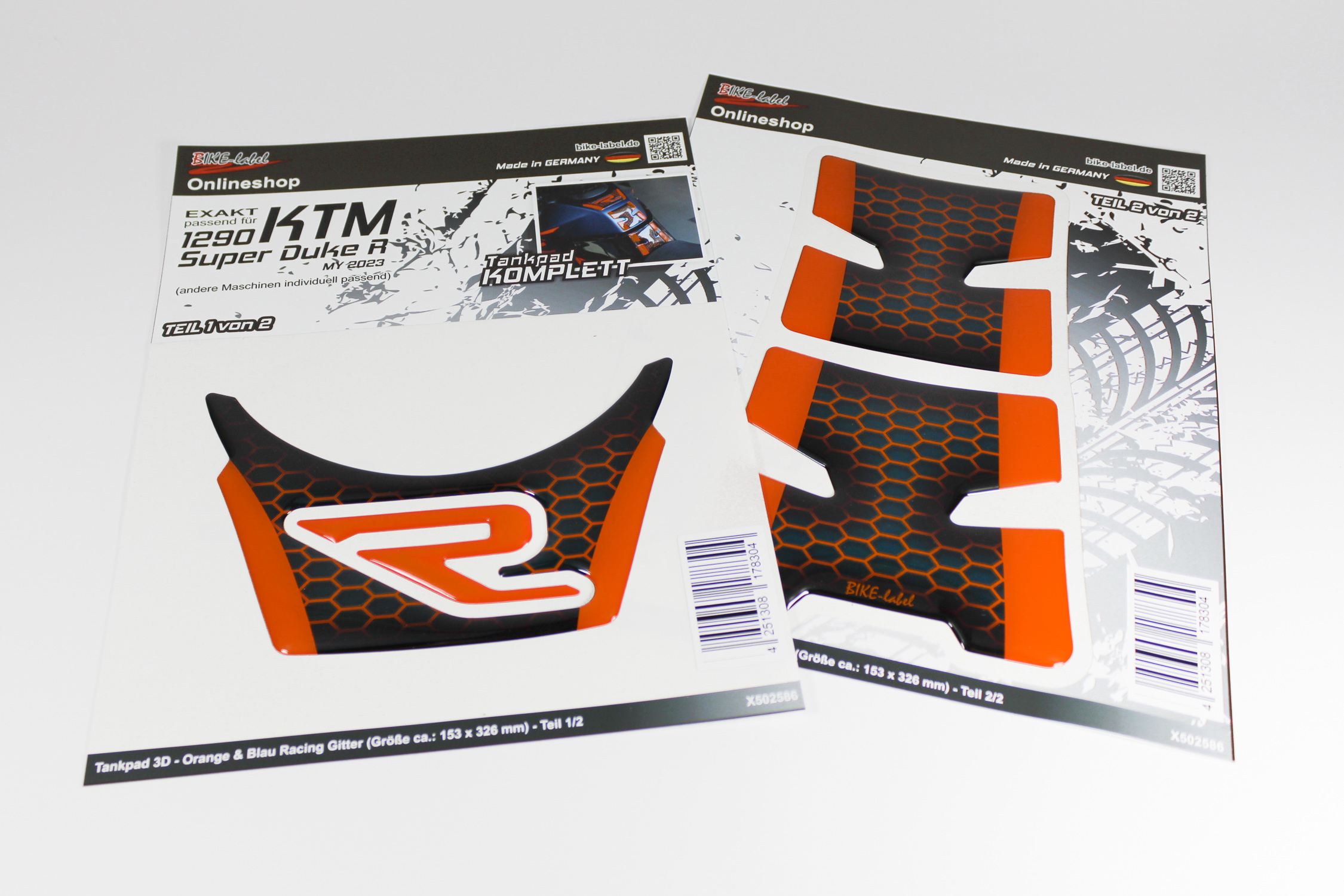 Tankpad kompatibel für Motorrad Tanks KTM 1290 Super Duke R (Evo) Orange Blau