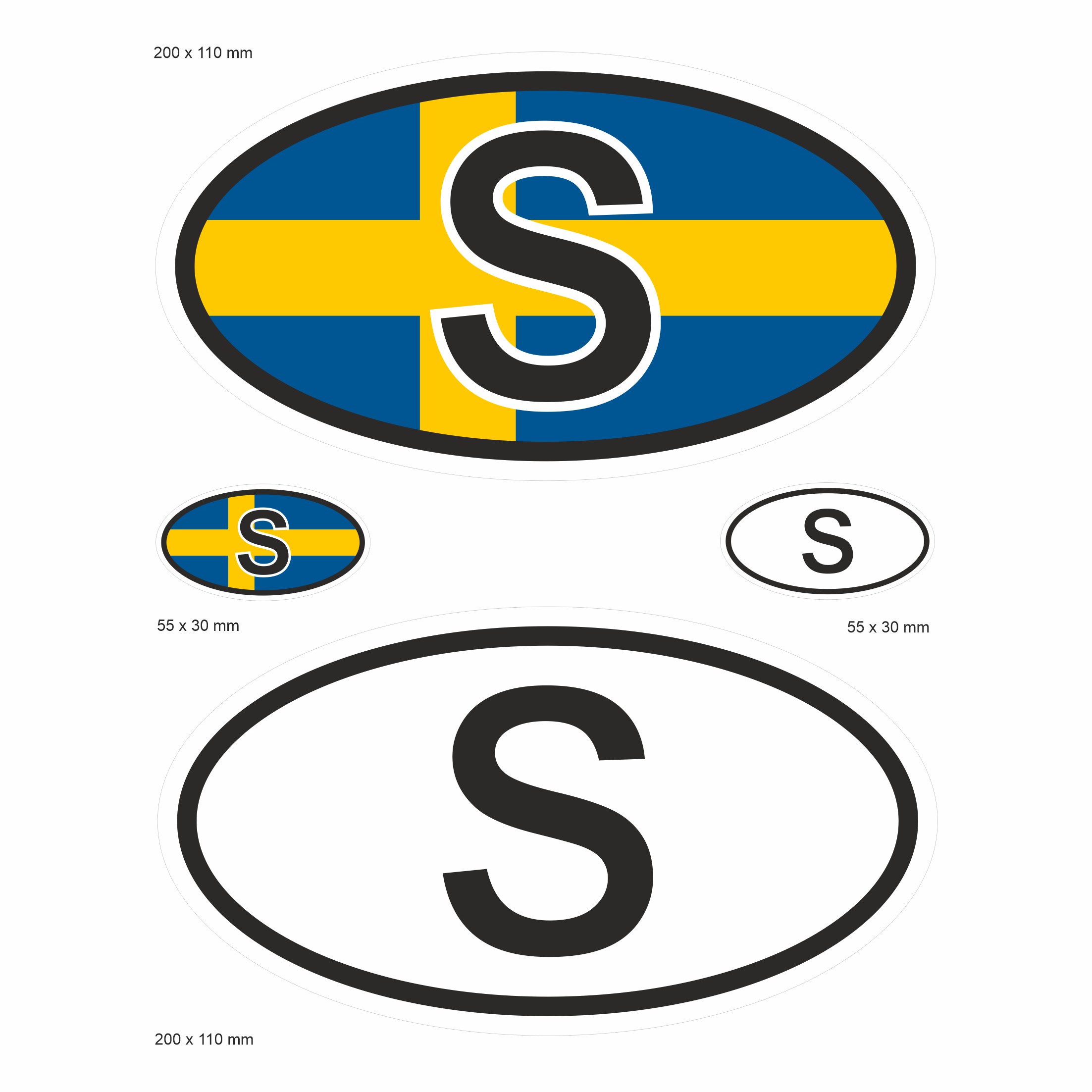 Länderkennzeichen Aufkleber Flagge 4 Stck Caravan Auto Kfz Camper Schweden