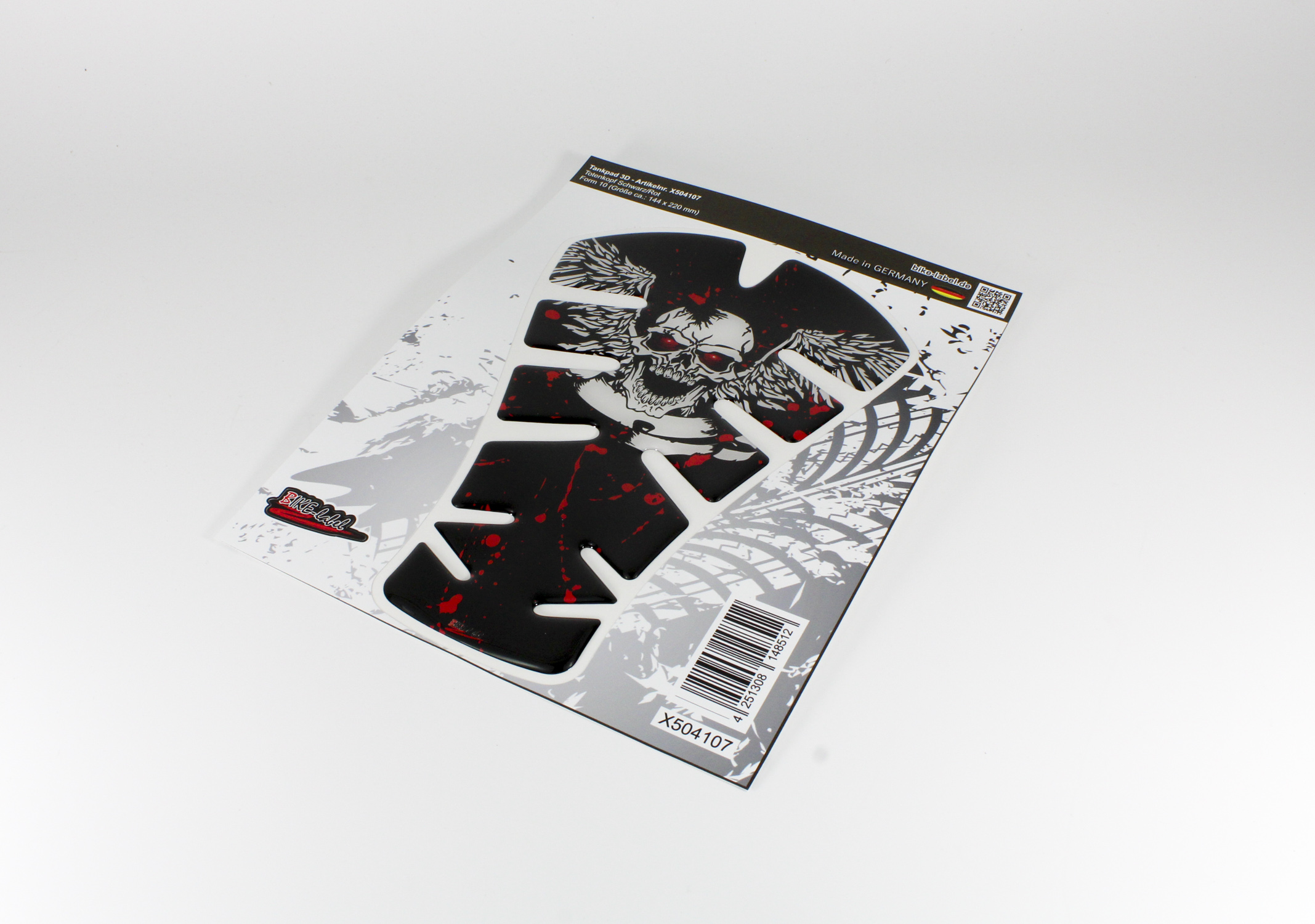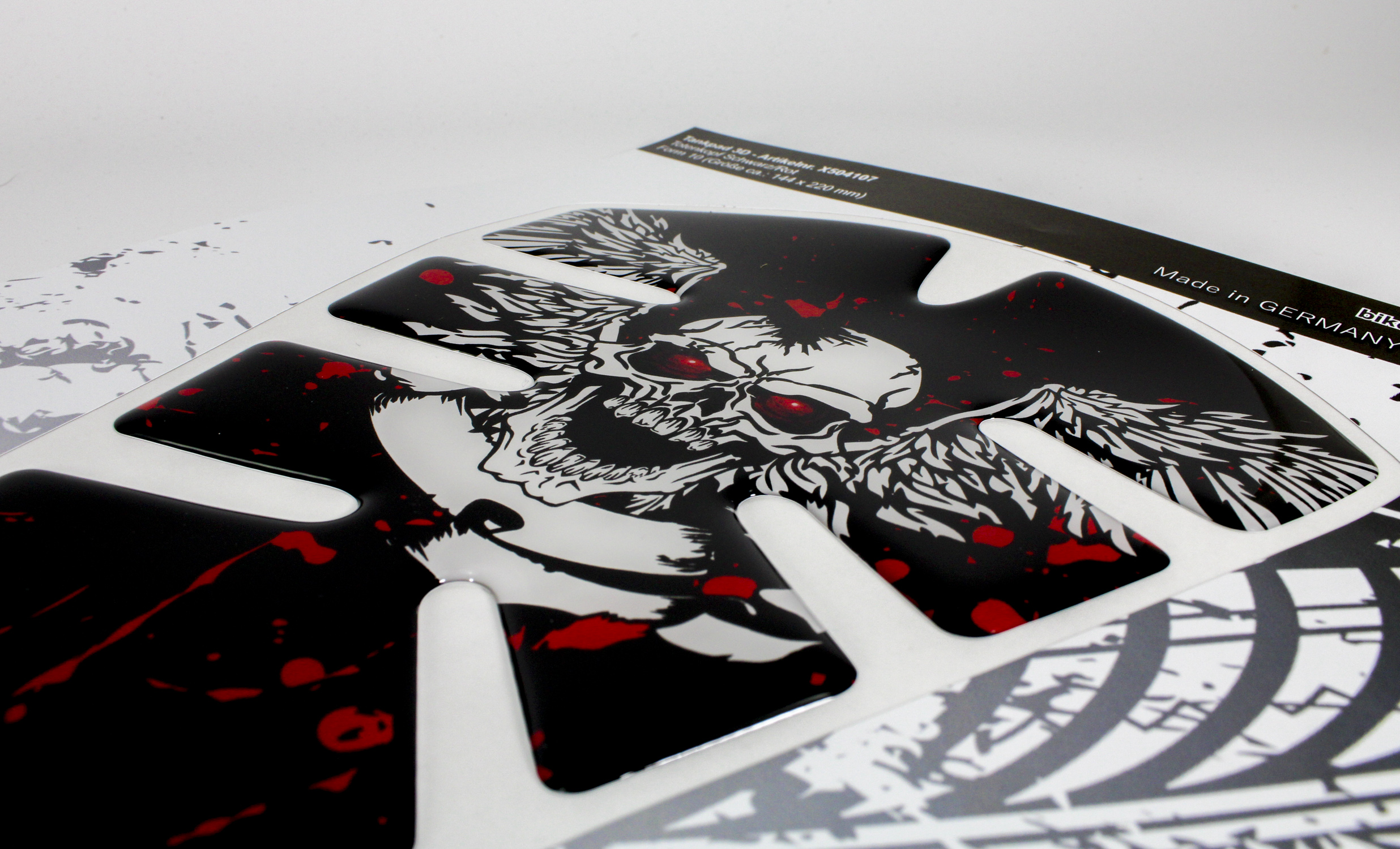 Eigenschaften "Motorrad 3D Tankpad Aufkleber - Totenkopf Flügel Lackschutz Tankschutz"
