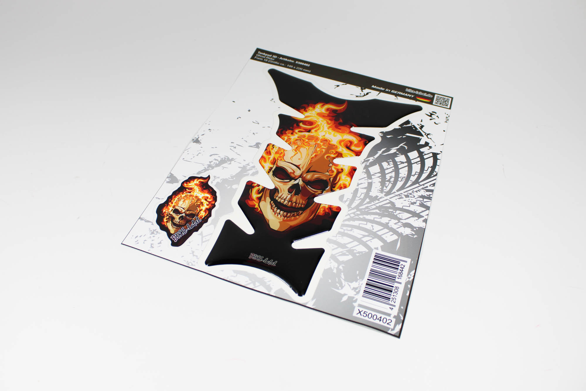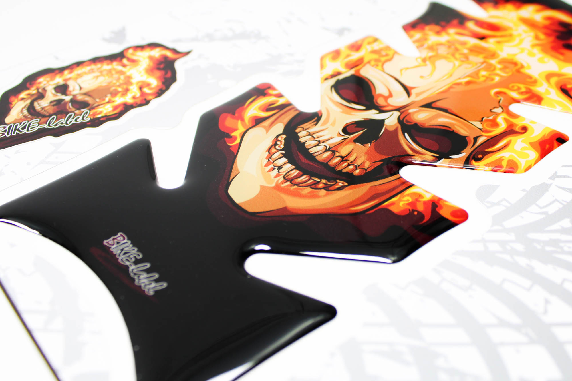 Eigenschaften "Motorrad 3D Tankpad Sticker – Totenkopf-Flammen Design, Lackschutz für Tank"