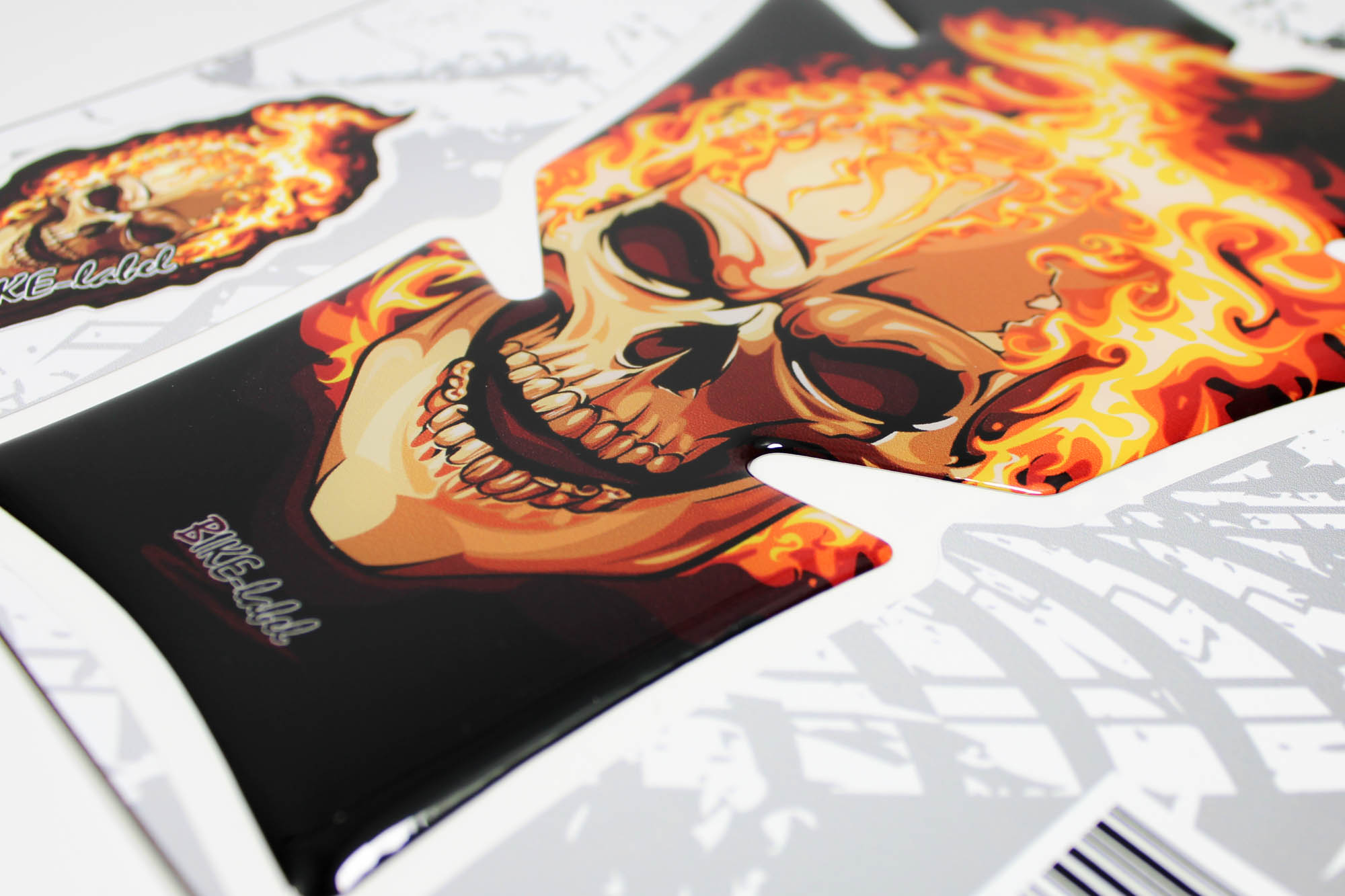 Motorrad 3D Tankpad Sticker – Totenkopf-Flammen Design, Lackschutz für Tank