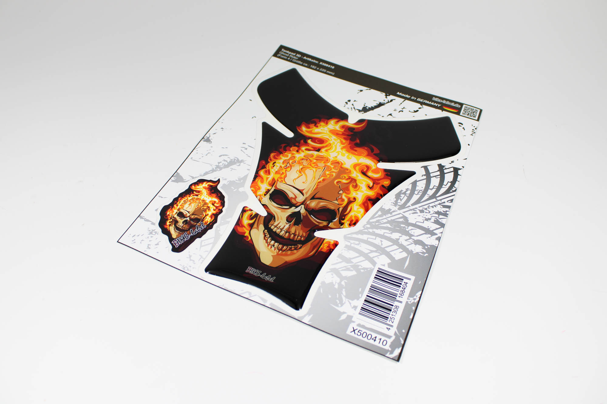 Eigenschaften "Motorrad 3D Tankpad Sticker – Totenkopf-Flammen Design, Lackschutz für Tank"