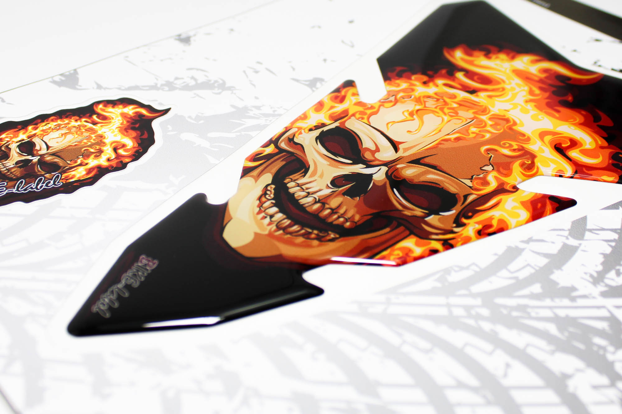 Eigenschaften "Motorrad 3D Tankpad Sticker – Totenkopf-Flammen Design, Lackschutz für Tank"