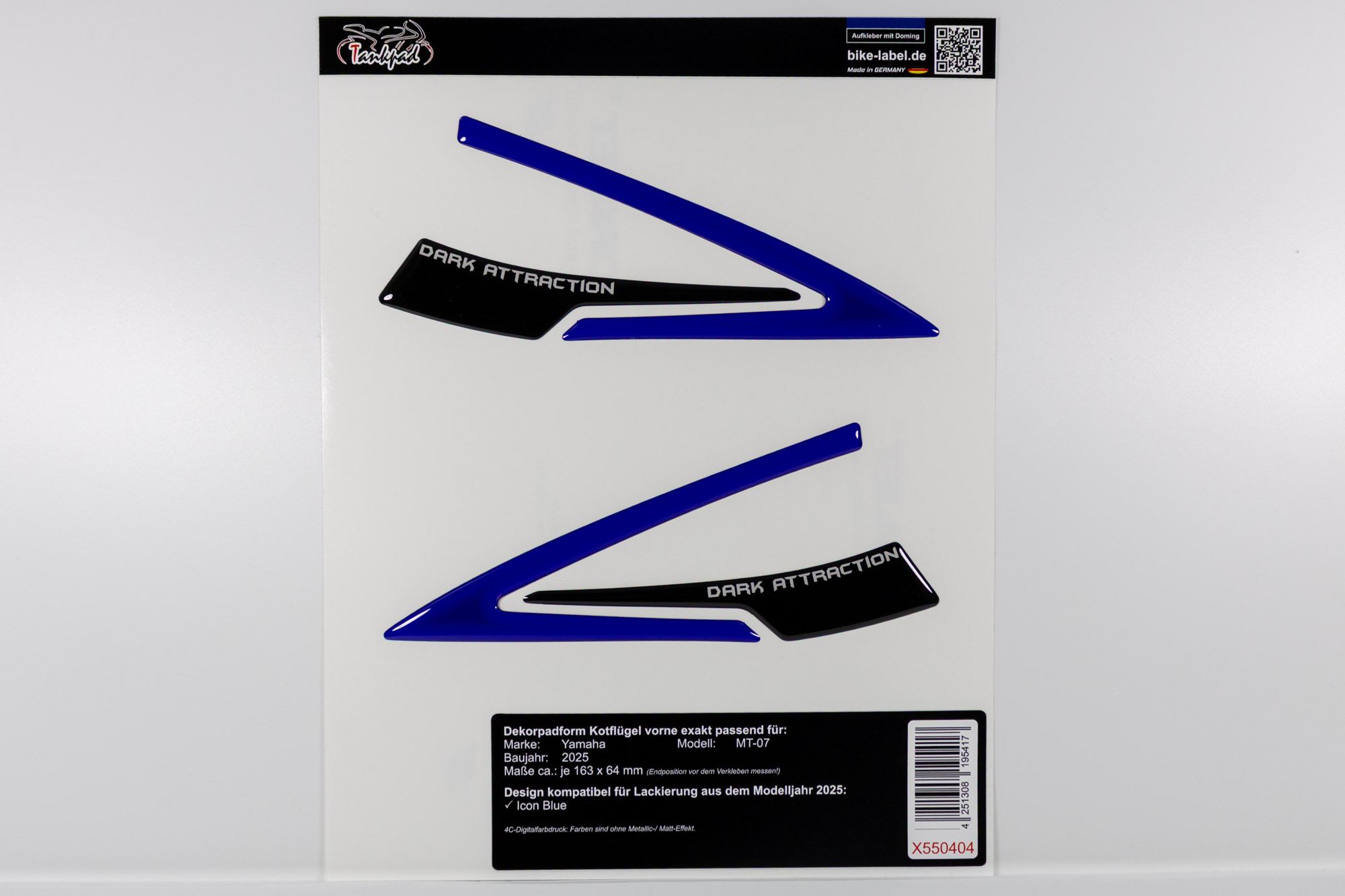 Eigenschaften "Motorrad Aufkleber Kotflügel vorne kompatibel mit Yamaha MT07 Icon Blue (MY 2025)"