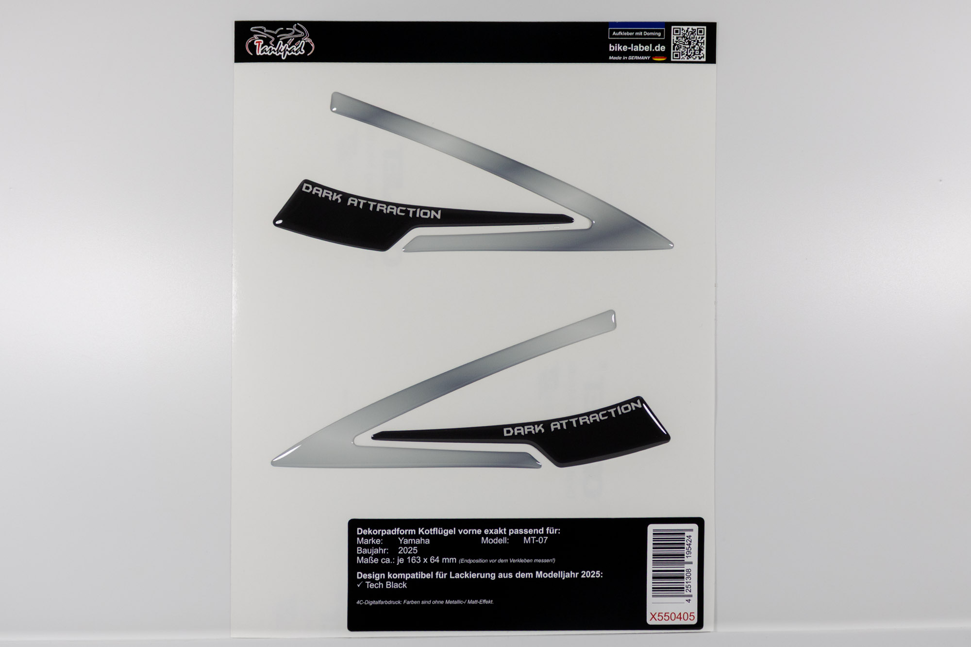 Eigenschaften "Motorrad Aufkleber Kotflügel vorne kompatibel mit Yamaha MT07 Tech Black (MY 2025)"