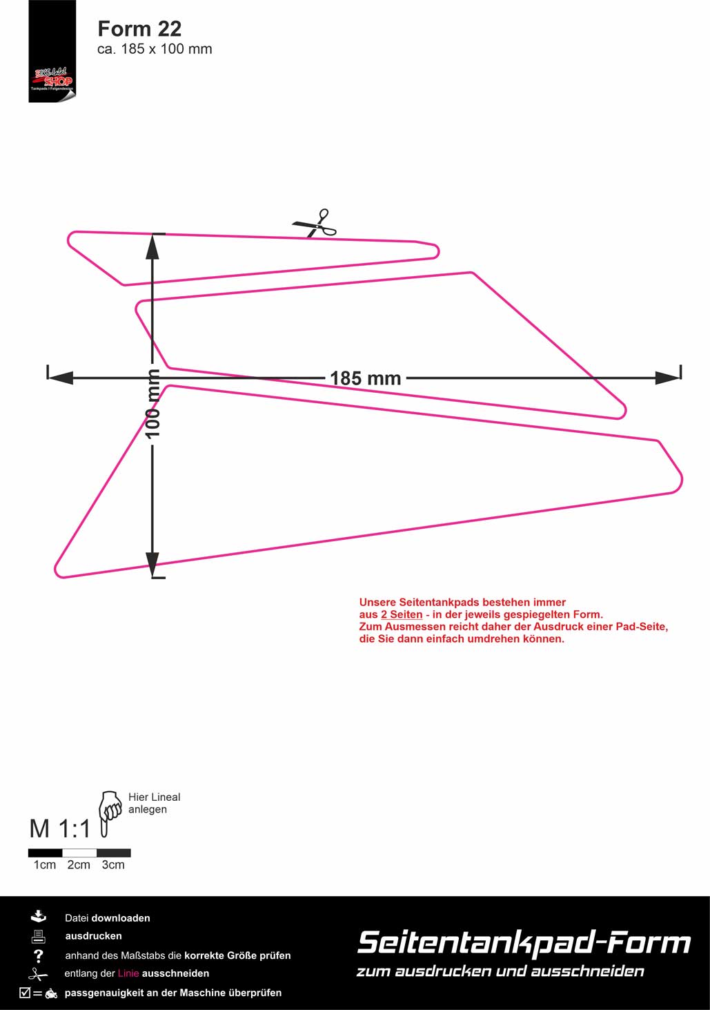 | Seitentankpad Form : | Form 22 (185 x 100 mm) |