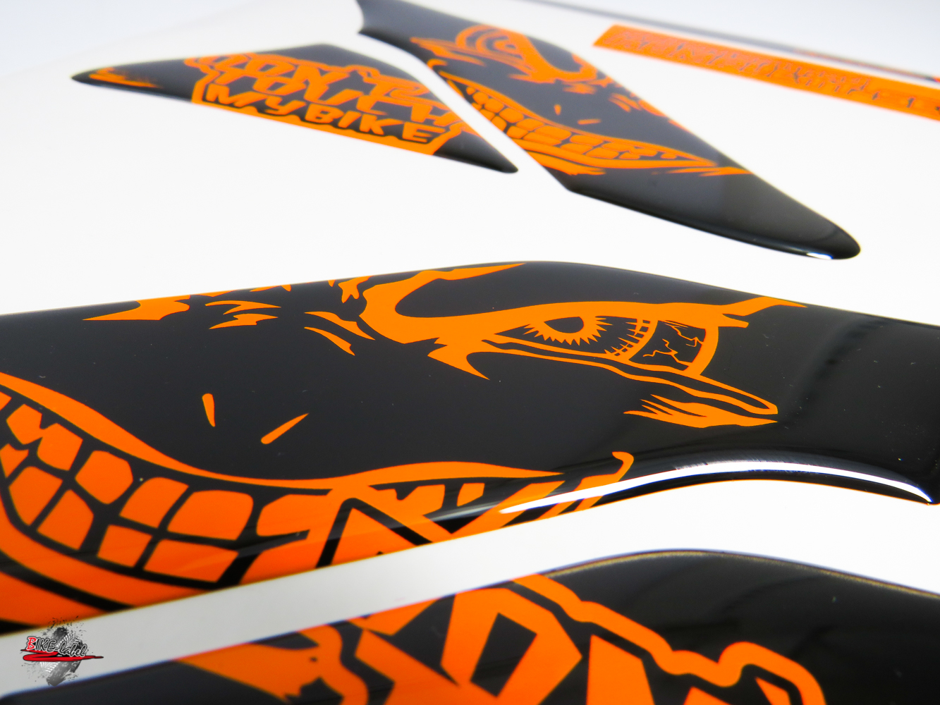 Eigenschaften "Motorrad Seitentankpad Gel Aufkleber böse Augen dont touch my bike "