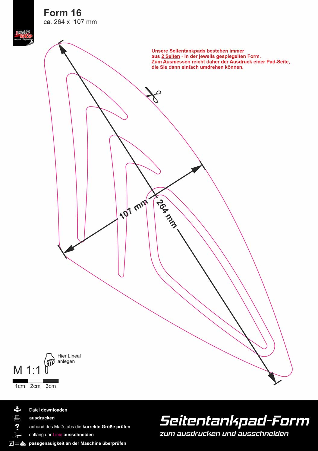 | Seitentankpad Form : | Form 16 (164 x 107 mm) |