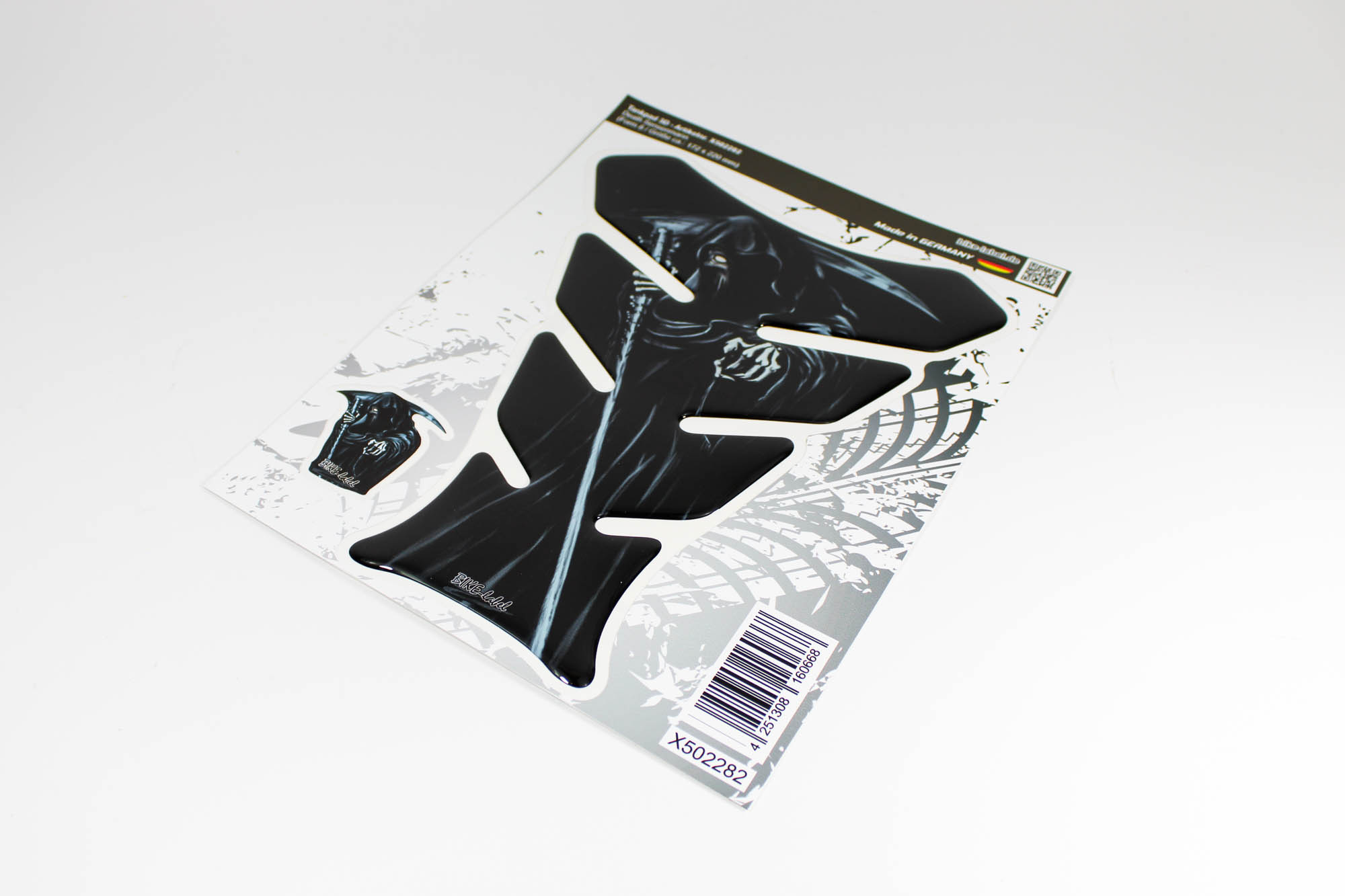 Eigenschaften "Motorrad Tankpad 3D Aufkleber – Sensenmann Design – Lackschutzfolie & Kratzschutz für den Tank"