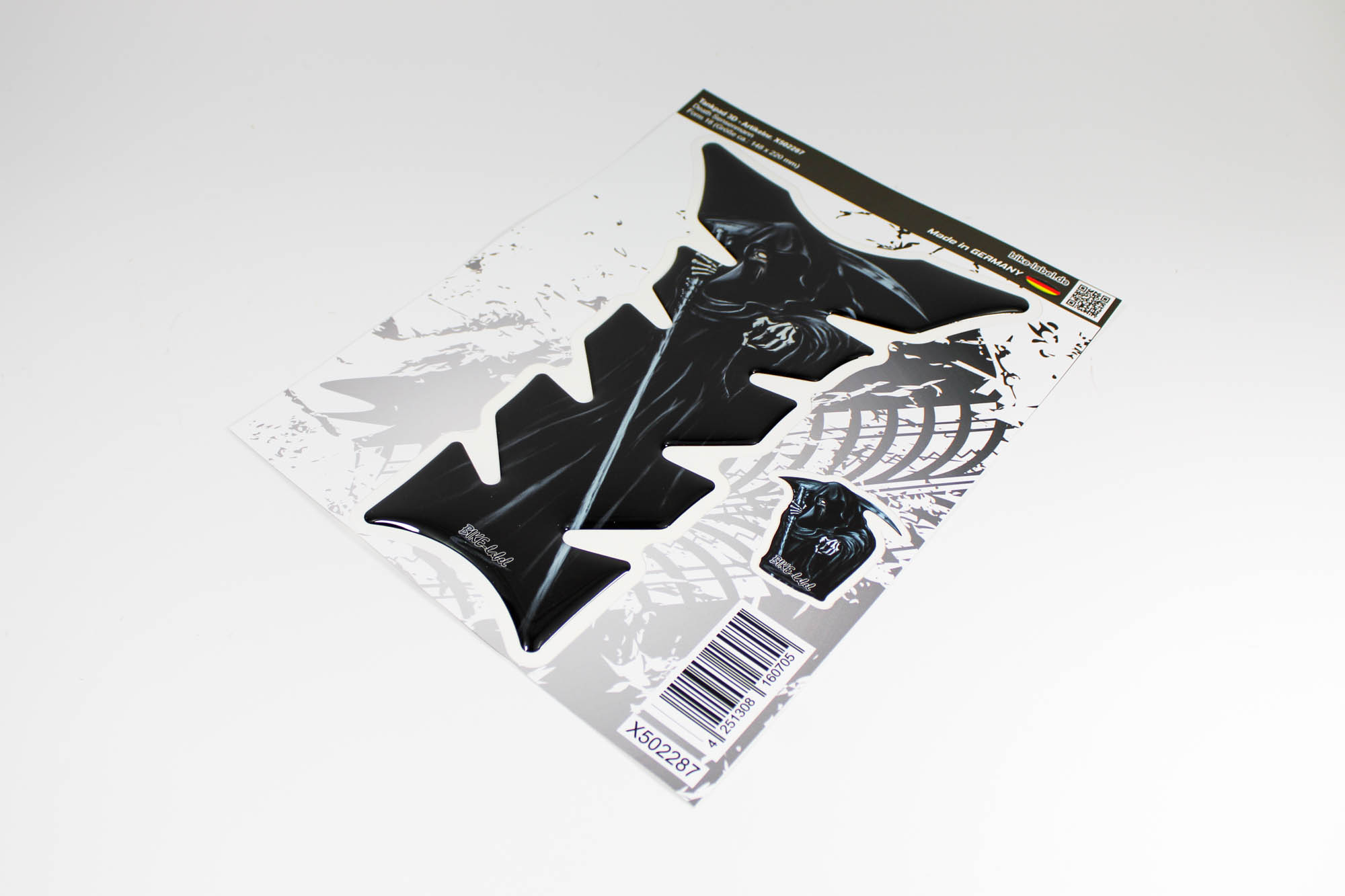 Eigenschaften "Motorrad Tankpad 3D Aufkleber – Sensenmann Design – Lackschutzfolie & Kratzschutz für den Tank"