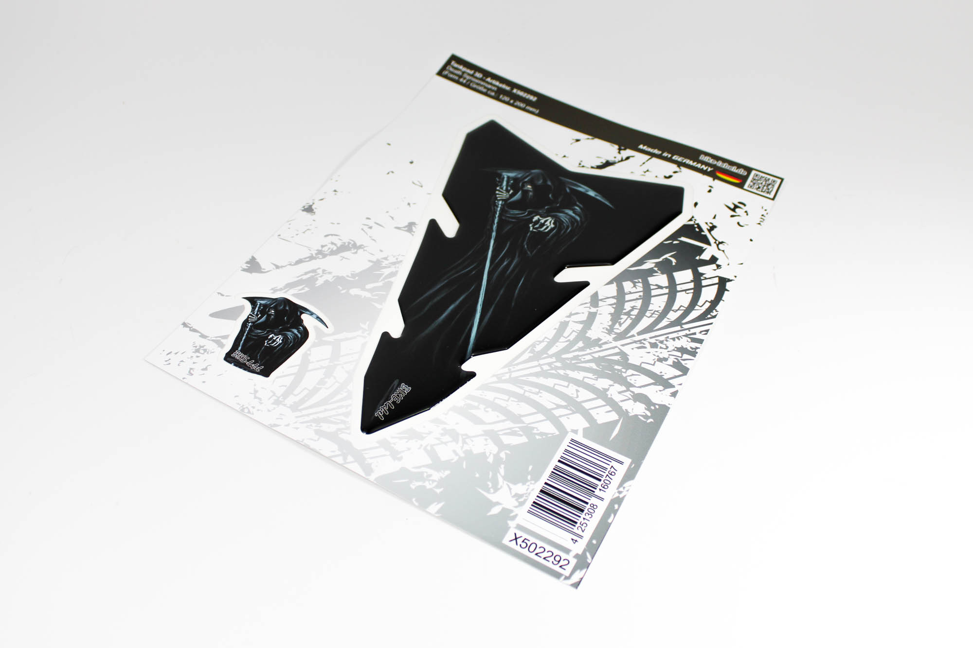 Eigenschaften "Motorrad Tankpad 3D Aufkleber – Sensenmann Design – Lackschutzfolie & Kratzschutz für den Tank"