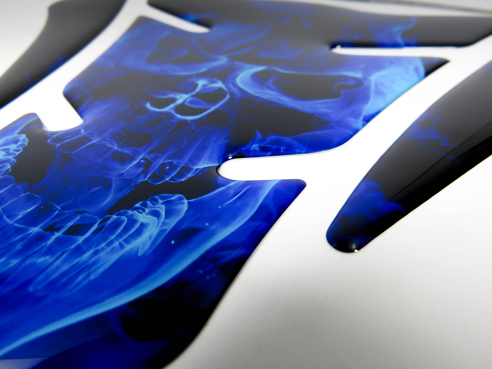 Eigenschaften "Motorrad Tankpad 3D Aufkleber - Totenkopf Flammen Blau Lackschutzfolie"