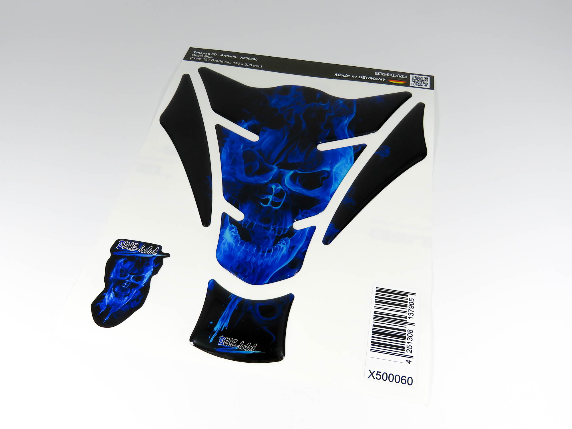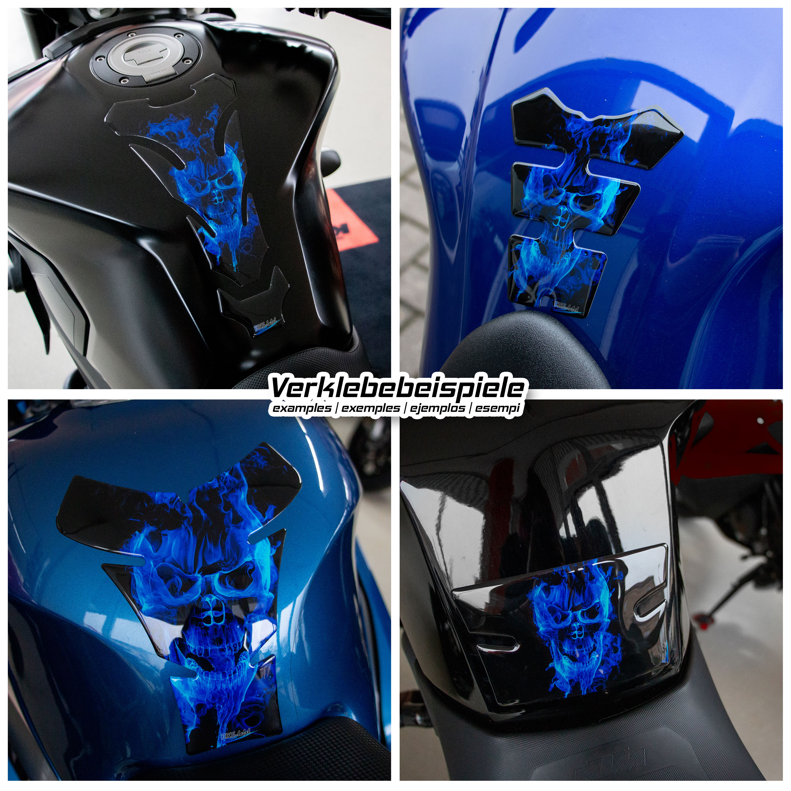 Motorrad Tankpad 3D Aufkleber - Totenkopf Flammen Blau Lackschutzfolie