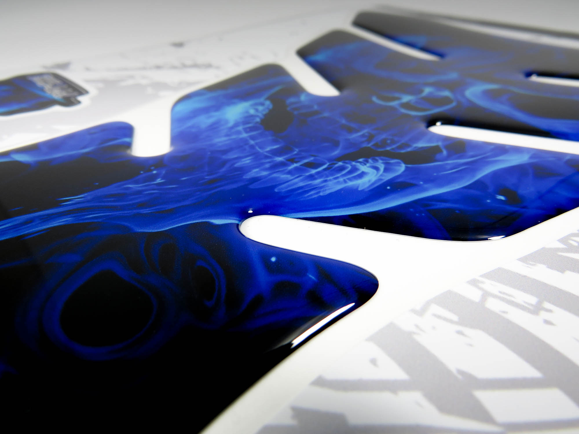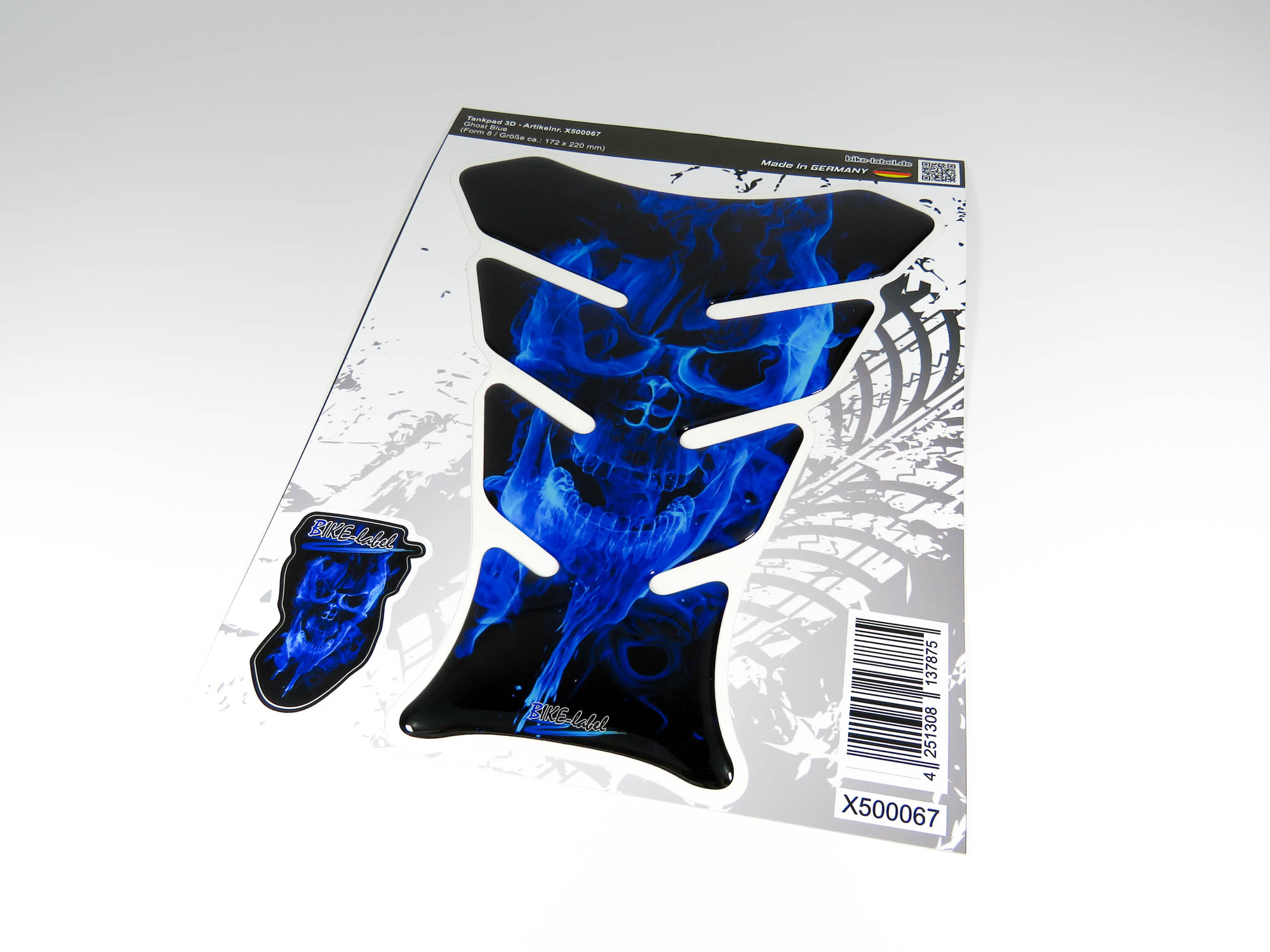 Eigenschaften "Motorrad Tankpad 3D Aufkleber - Totenkopf Flammen Blau Lackschutzfolie"