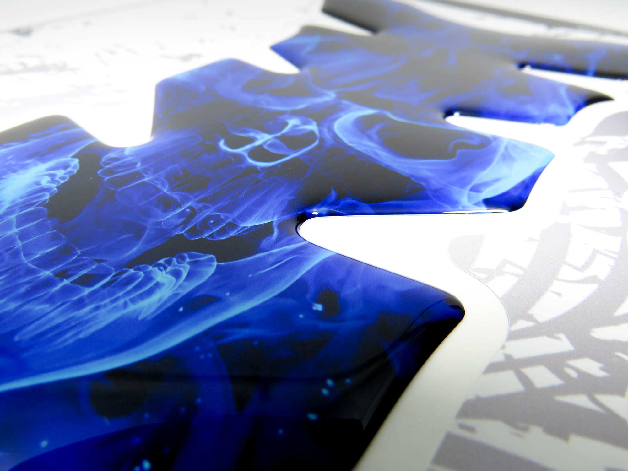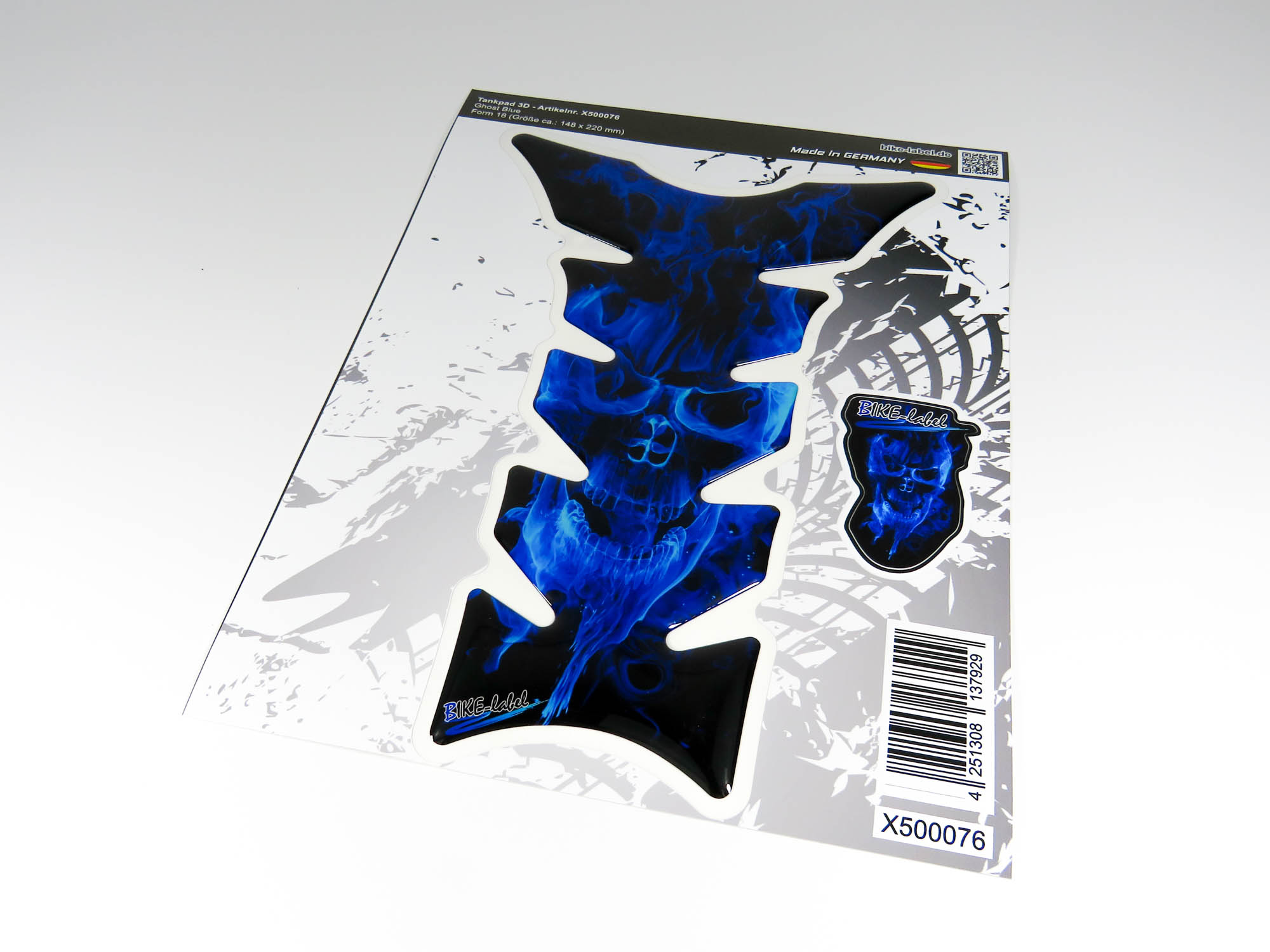 Eigenschaften "Motorrad Tankpad 3D Aufkleber - Totenkopf Flammen Blau Lackschutzfolie"