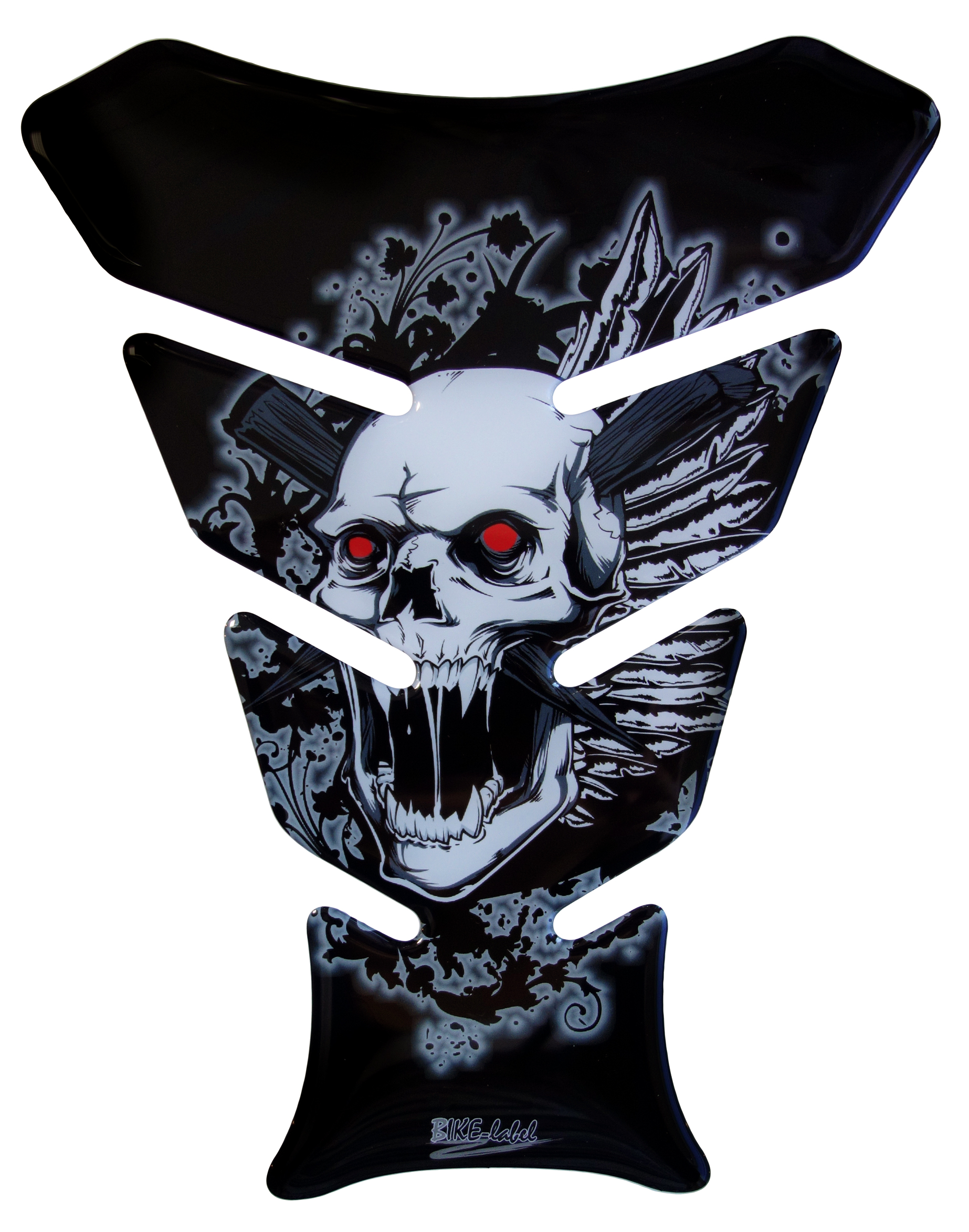 Motorrad Tankpad 3D Gel – Lackschutz Aufkleber in Weiß Schwarz| Skull