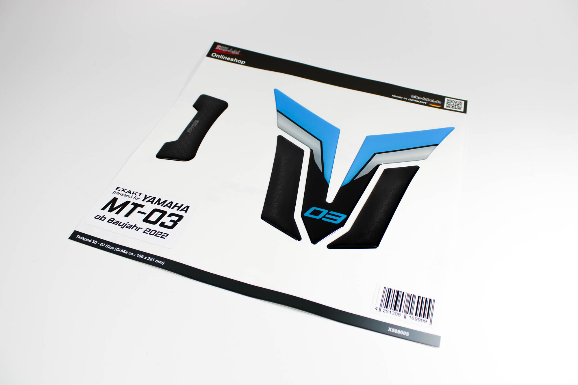 Eigenschaften "Motorrad Tankpad Aufkleber 3D kompatibel mit Yamaha MT-03 Icon Blue - ab BJ 2022"