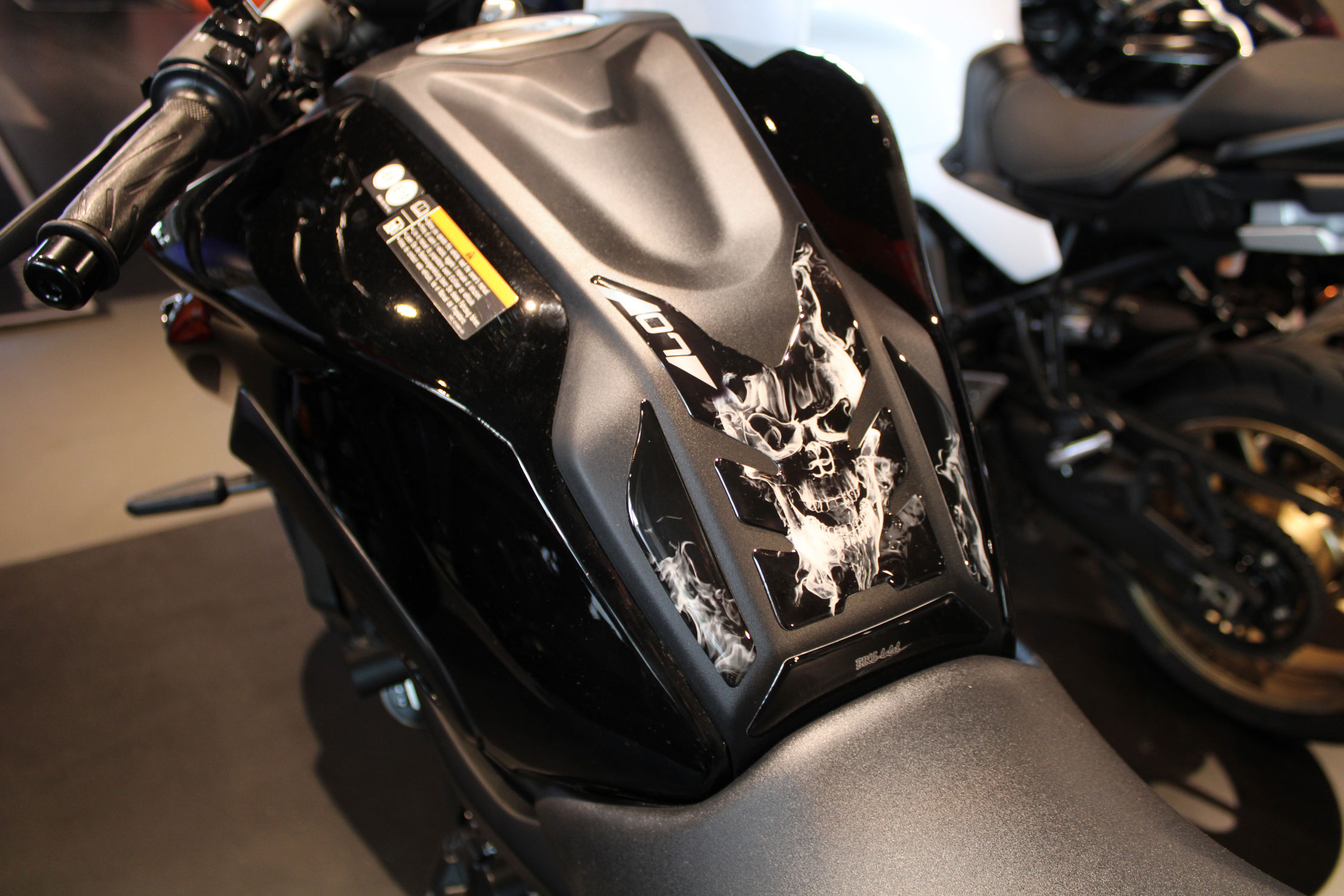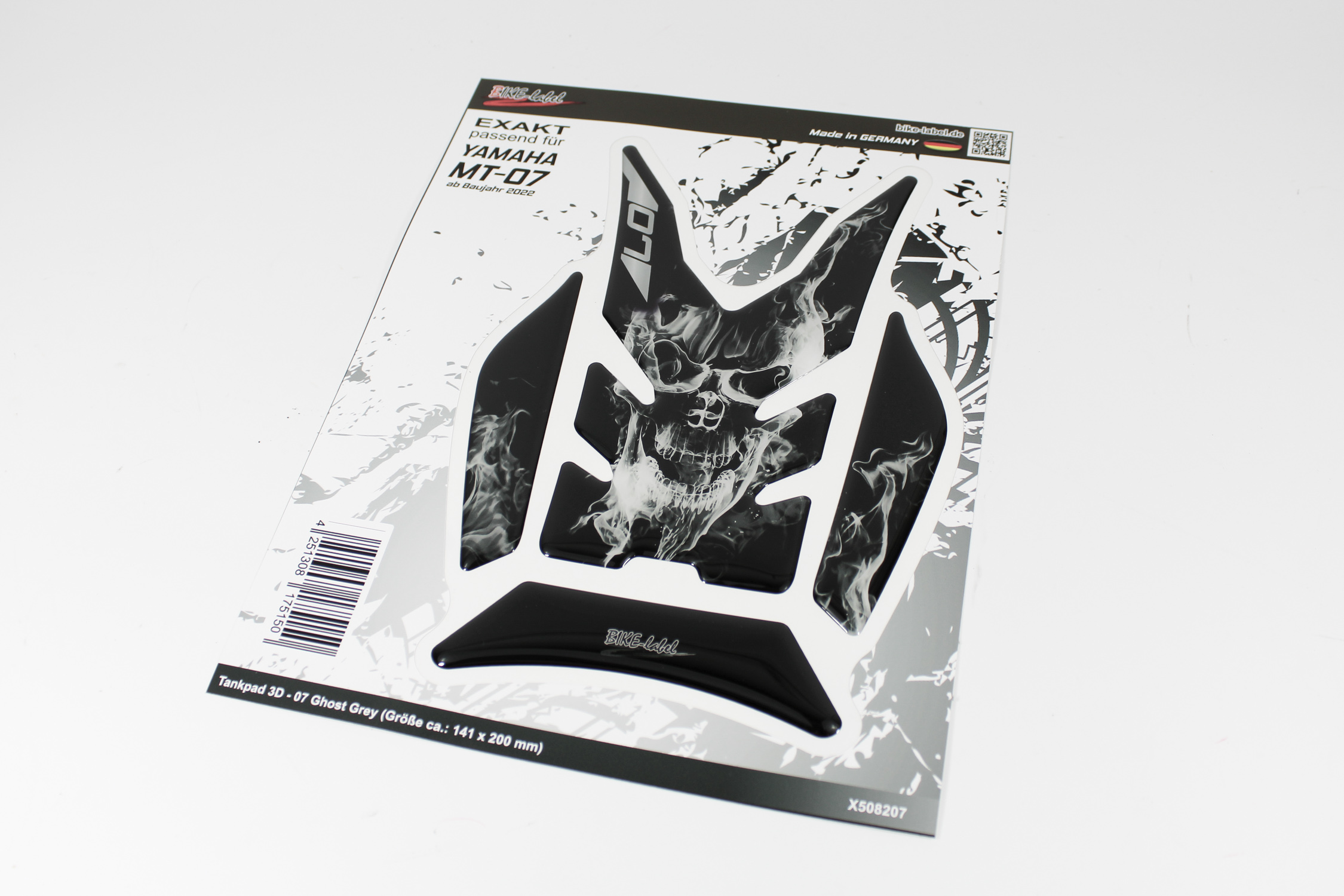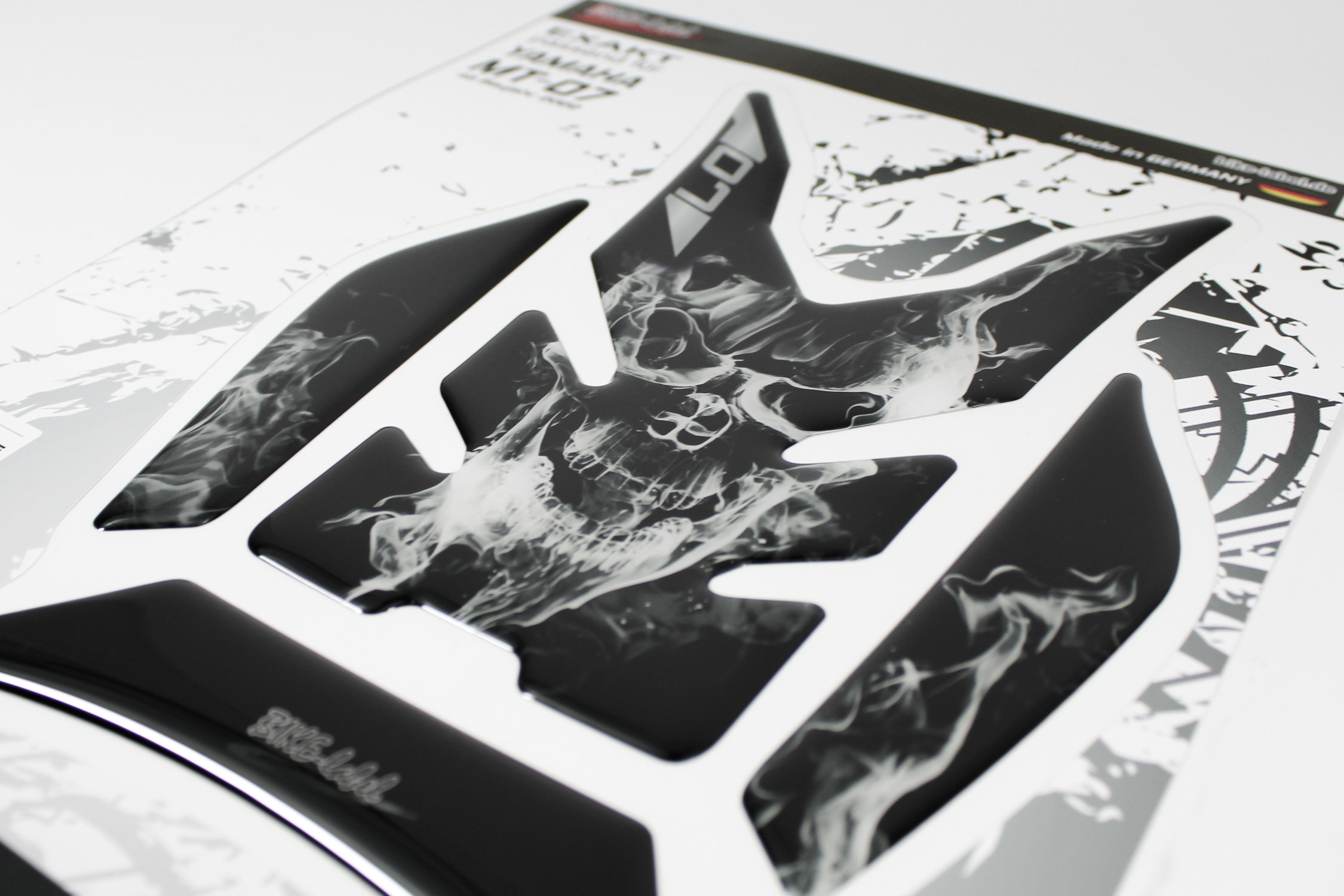 Eigenschaften "Motorrad Tankpad Aufkleber kompatibel mit Yamaha MT-07 Totenkopf grau ab BJ 2022"