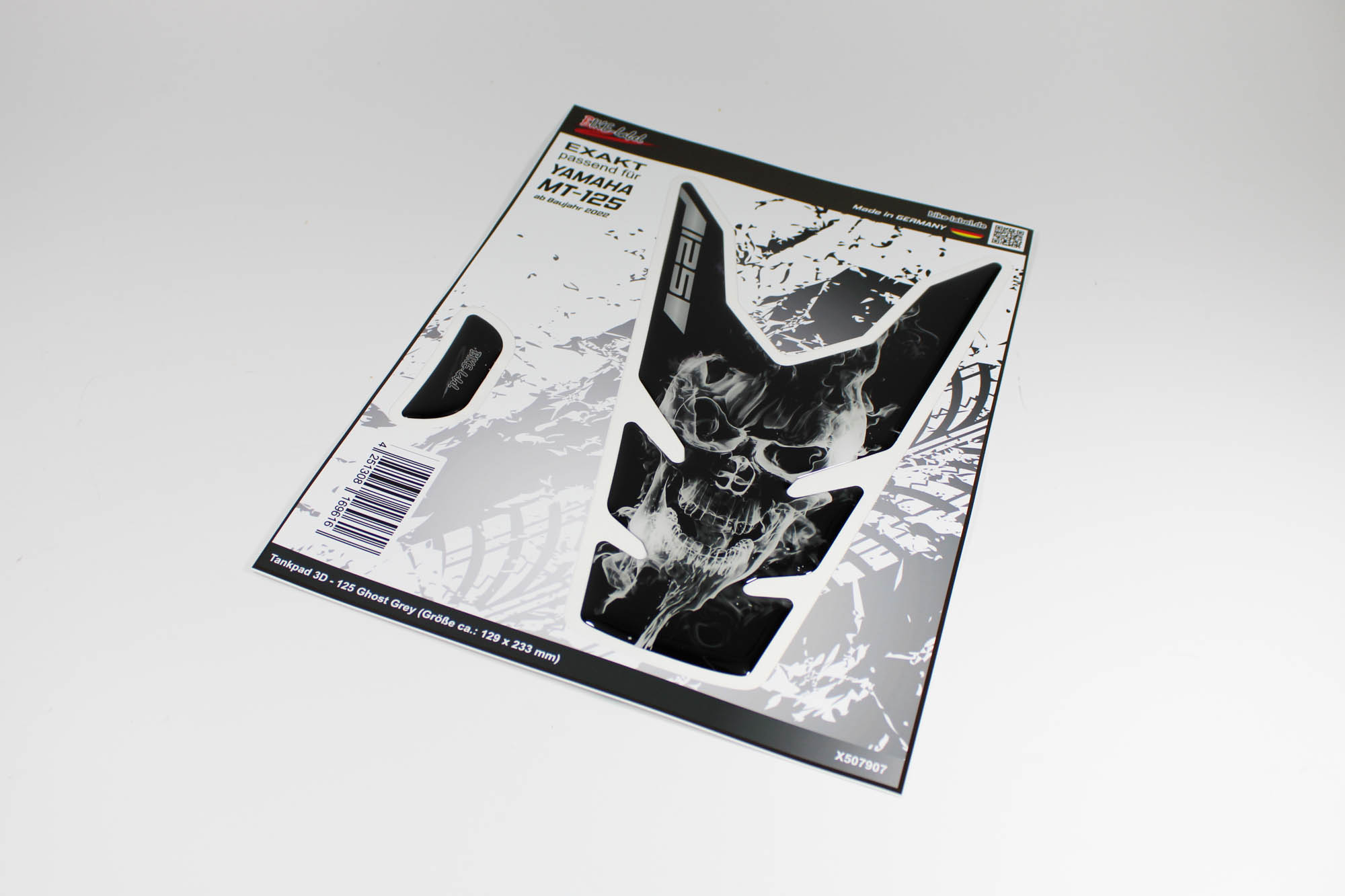 Eigenschaften "Motorrad Tankpad Totenkopf grau Lackschutz kompatibel mit Yamaha MT-125 ab 2022"