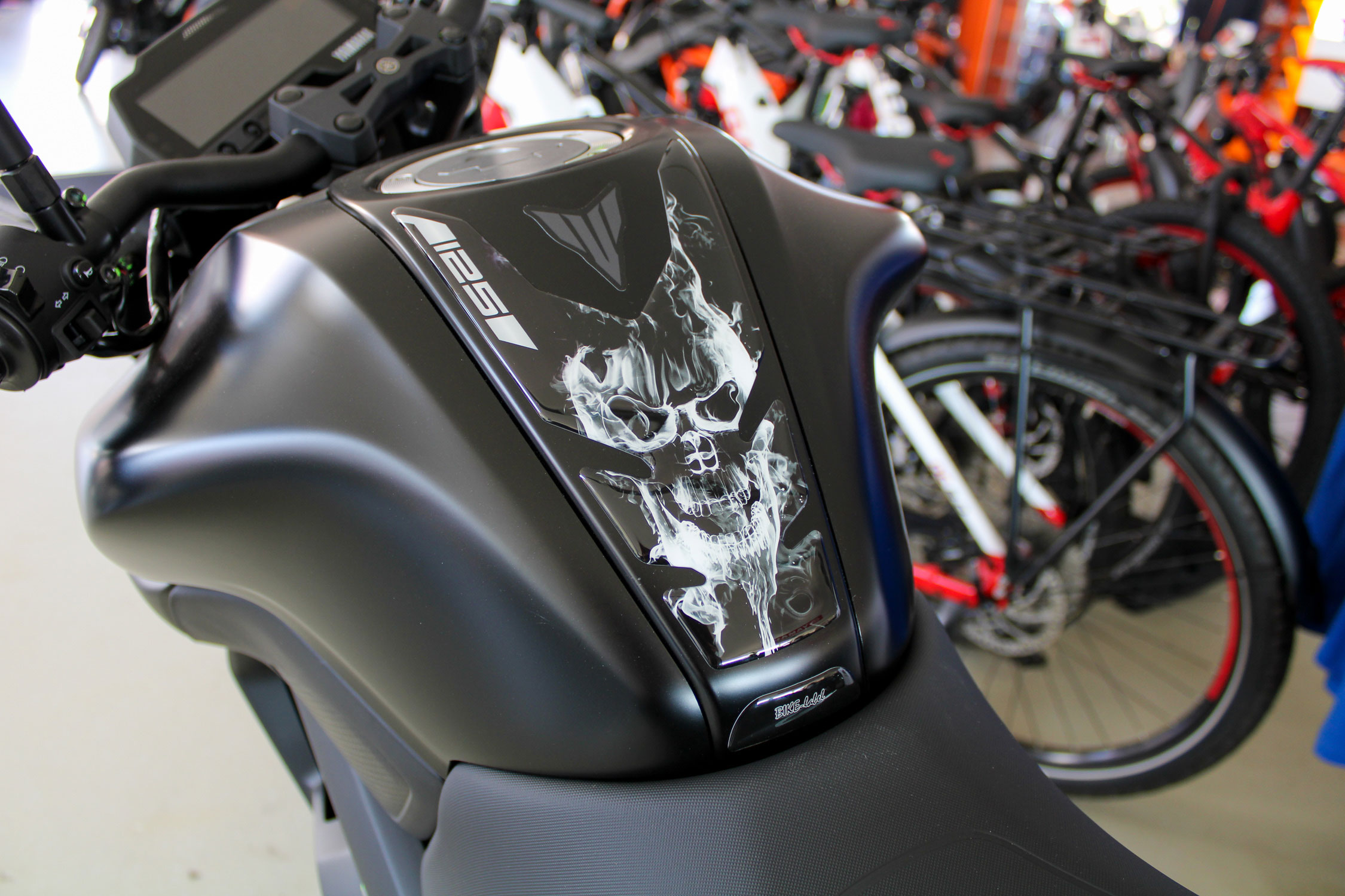Motorrad Tankpad Totenkopf grau Lackschutz kompatibel mit Yamaha MT-125 ab 2022