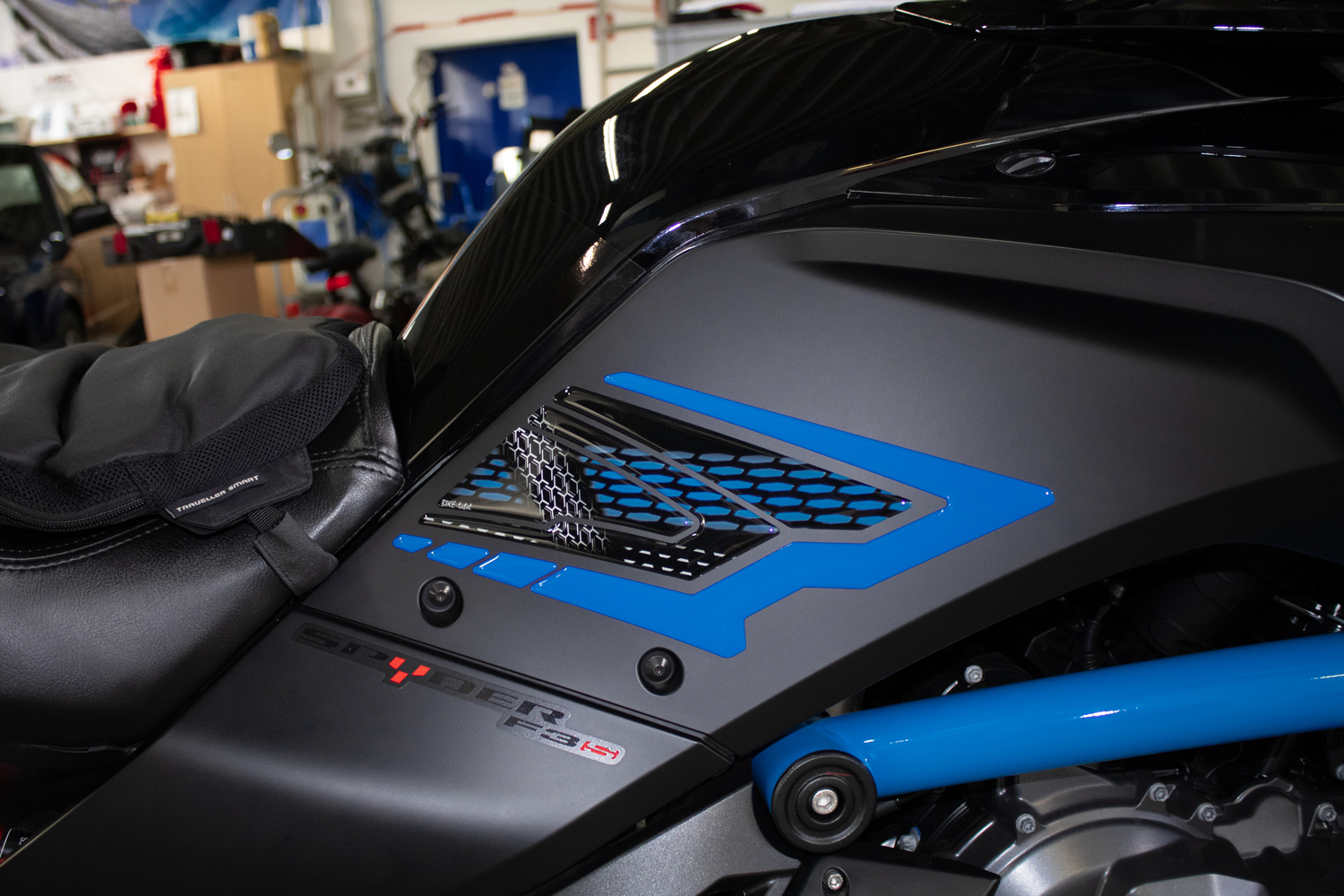 Hochwertiges 3D Seitentankpad - speziell entwickelt für die can-am Spyder F3