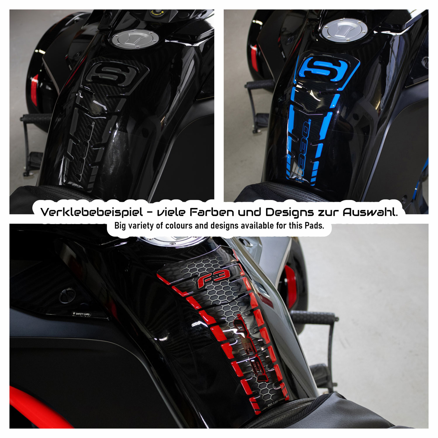 Das Tankpad ist passgenau für die Modelle F3, F3-S, F3-S Special Series, F3 Limited sowie F3 Limited Special Series und bietet zuverlässigen Schutz vor Kratzern, Abrieb und Beschädigungen im Tankbereich.