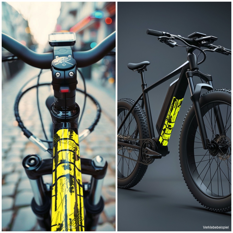Eigenschaften "Rahmenaufkleber Set Neon Gelb Design Racing Splatter für Fahrrad E-Bike Roller Rahmen"