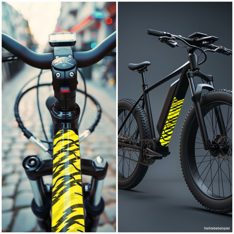 Eigenschaften "Rahmenaufkleber Set Neon Gelb Design Zick Zack für Fahrrad E-Bike Roller Rahmen"