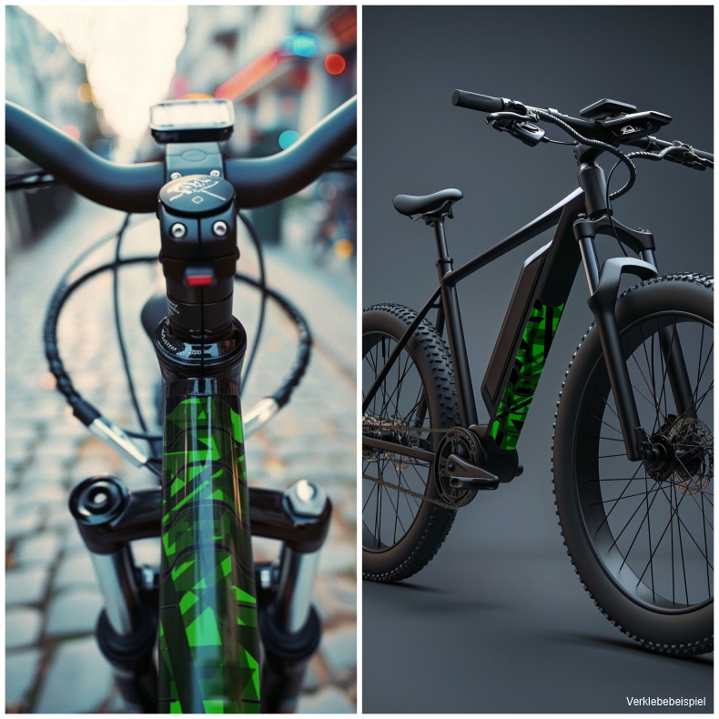 Eigenschaften "Rahmenaufkleber Set Neon Grün Design grafik style für Fahrrad E-Bike Roller Rahmen"