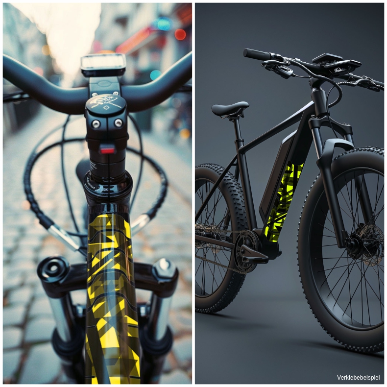 Eigenschaften "Rahmenaufkleber Set Neon Gelb Design grafik style für Fahrrad E-Bike Roller Rahmen"