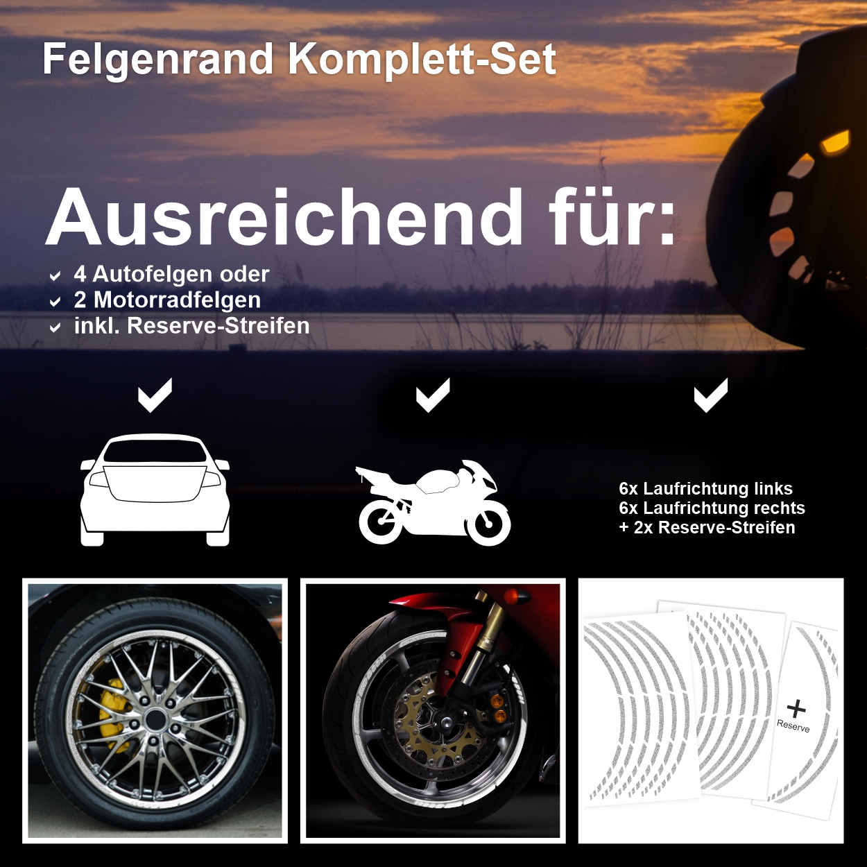 Reflex Weiß - Aufkleber GP Felgenrand rückstrahlend für Auto und Motorrad 16 17 18 Zoll