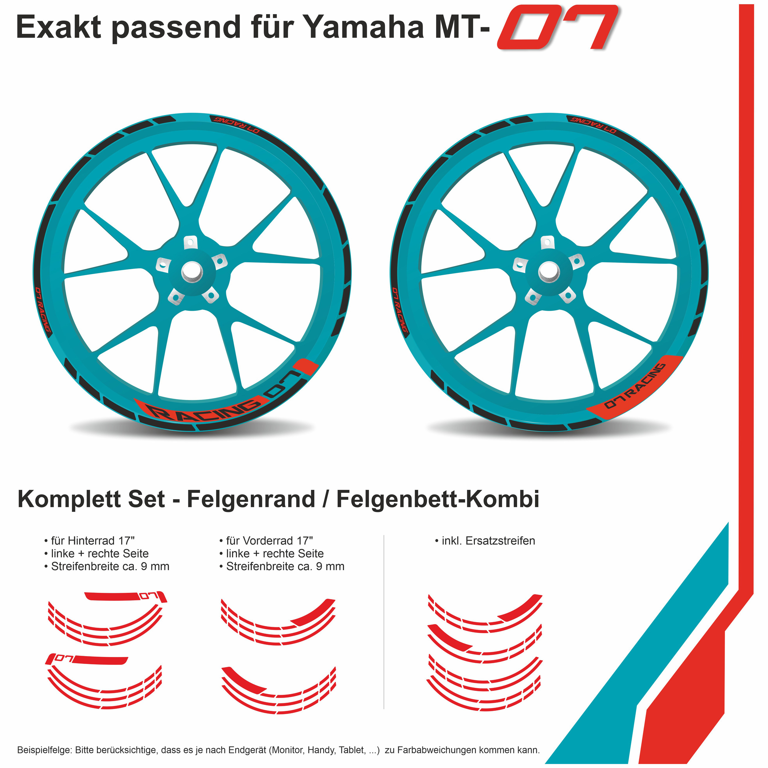 Set Felgenränder Aufkleber Motorradfelge kompatibel für Yamaha Cyan Storm MT-07
