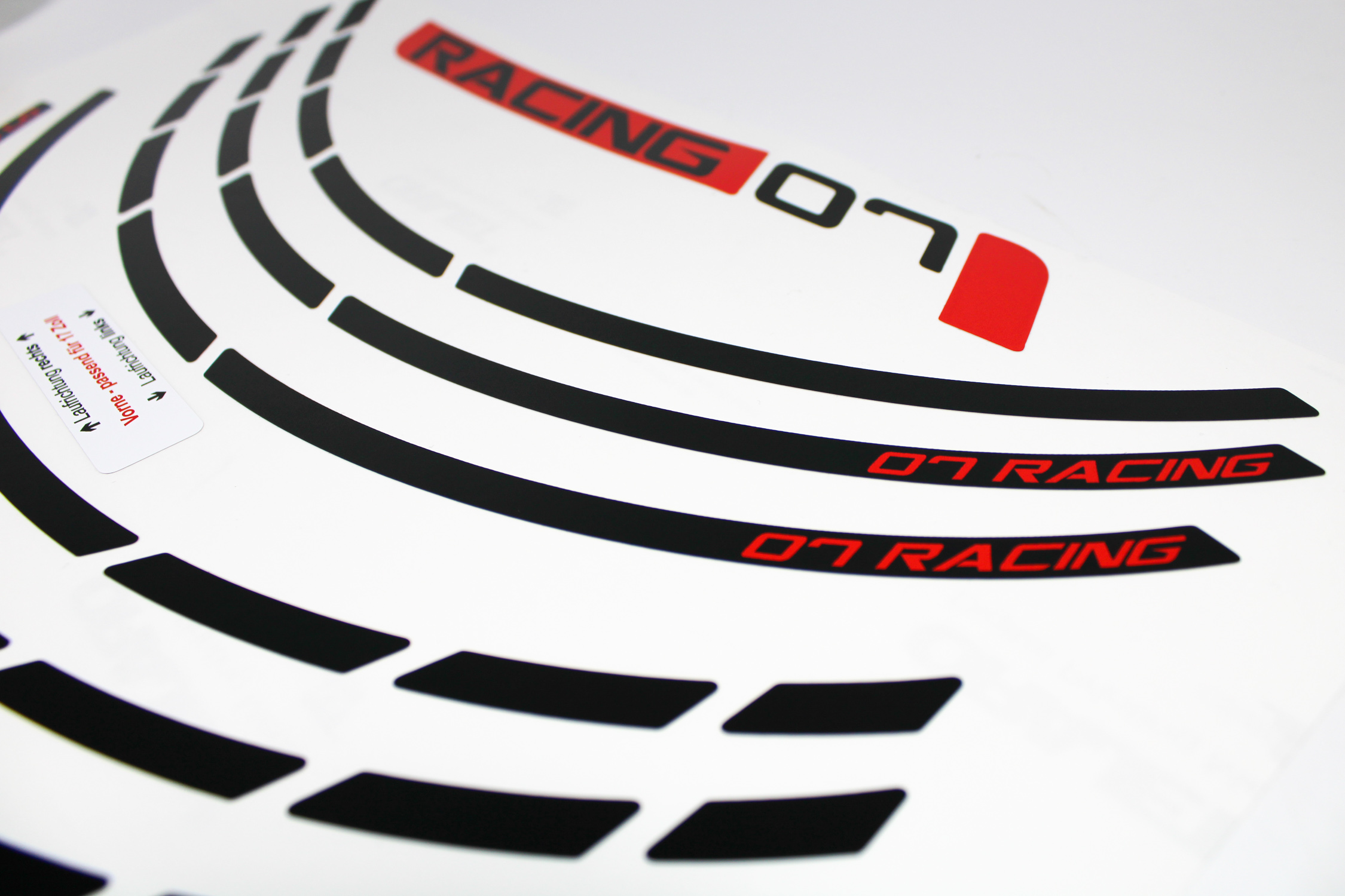 | Wichtige Hinweise : | Felgenaufkleber haften nicht auf rauen Oberflächen (z. B. pulverbeschichteten Felgen). Reklamation nach dem Anbringen ausgeschlossen. |